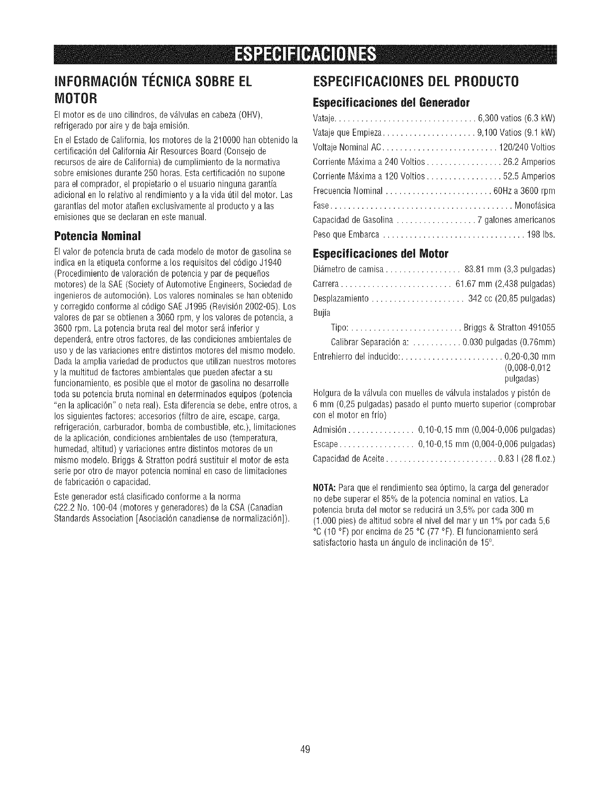 Algunos motores cuentan con la certificaci6n de cumplimiento de la