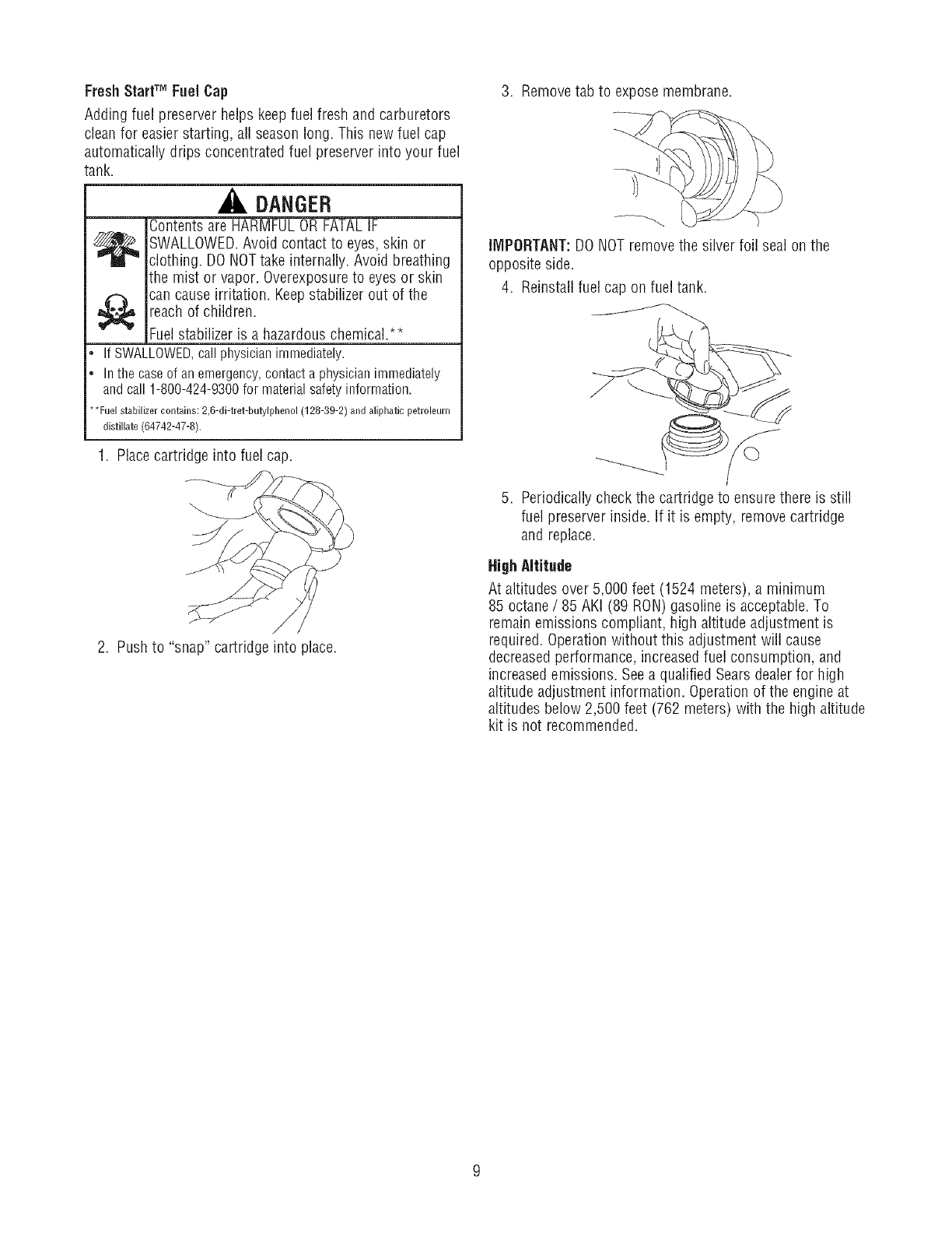 • FreshStartTM fuel capis designedto holdacartridgewhich