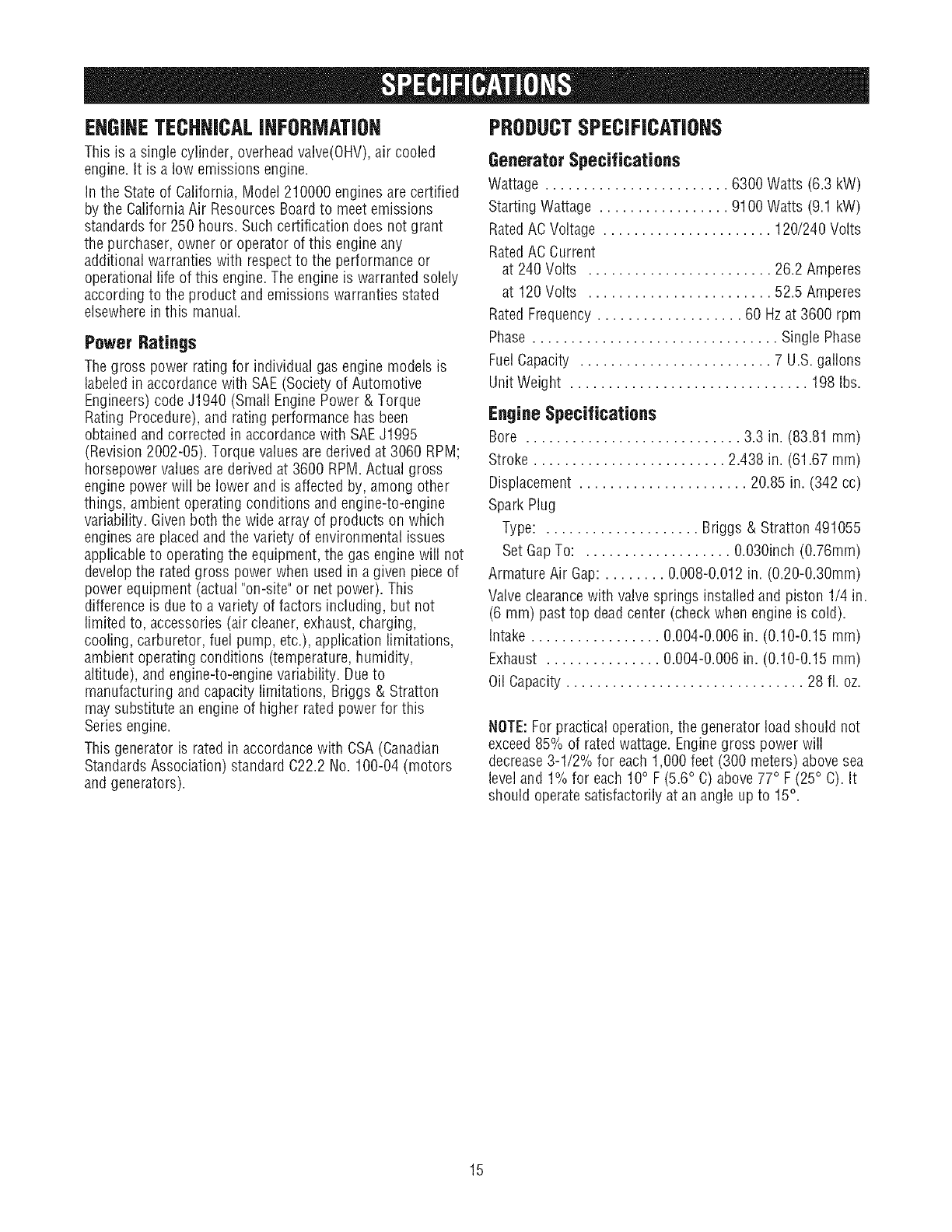 Craftsman 580326311 User Manual GENERATOR Manuals And Guides L0712455