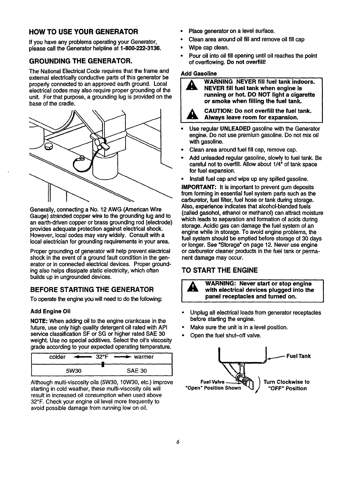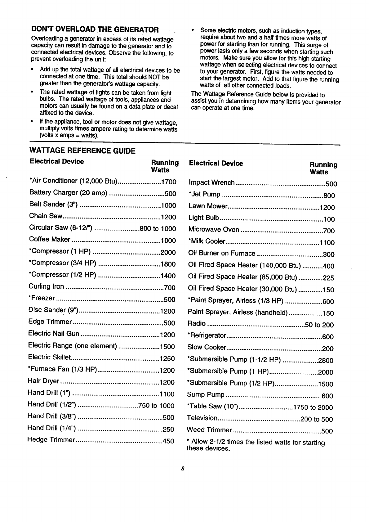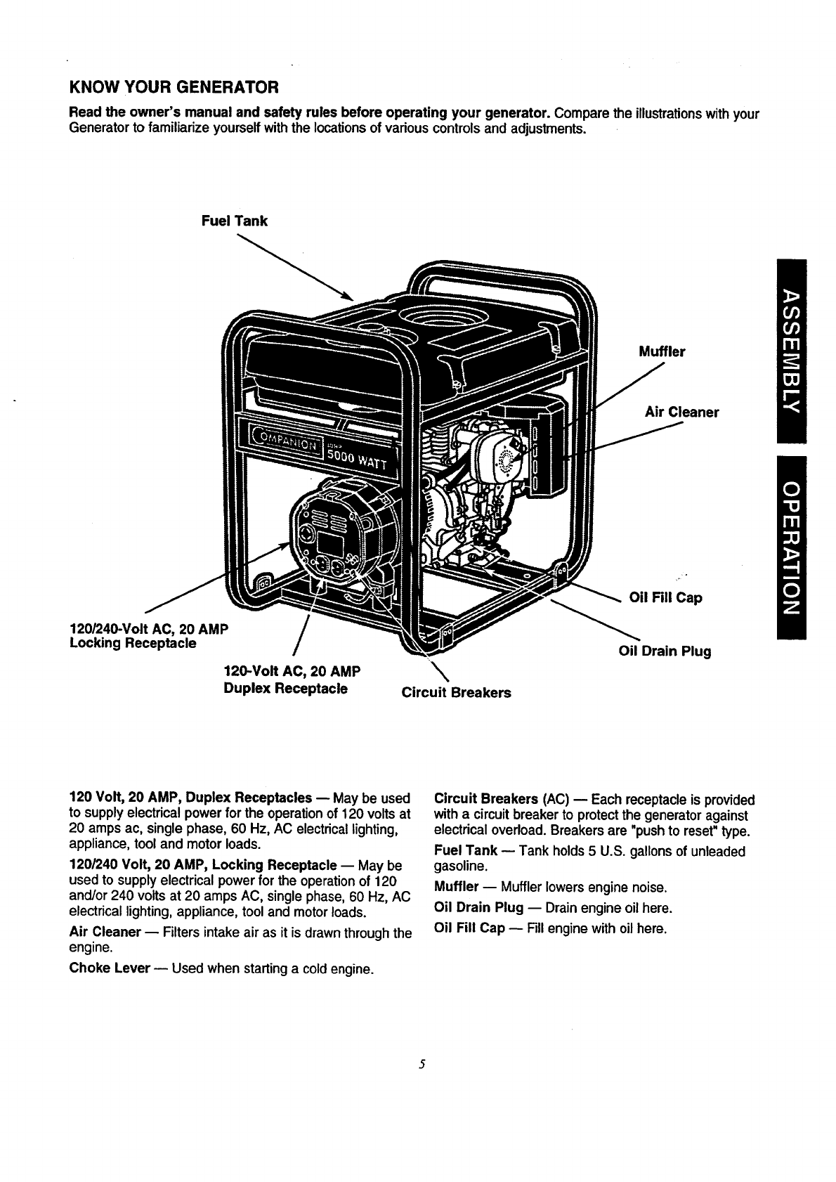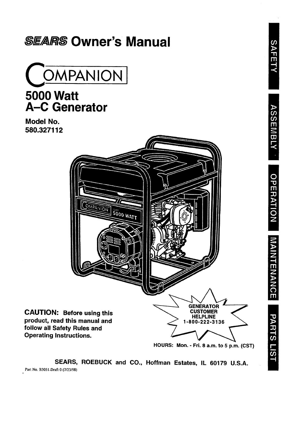 Craftsman 580327112 User Manual 5000 WATT A C GENERATOR Manuals And Guides 98100016