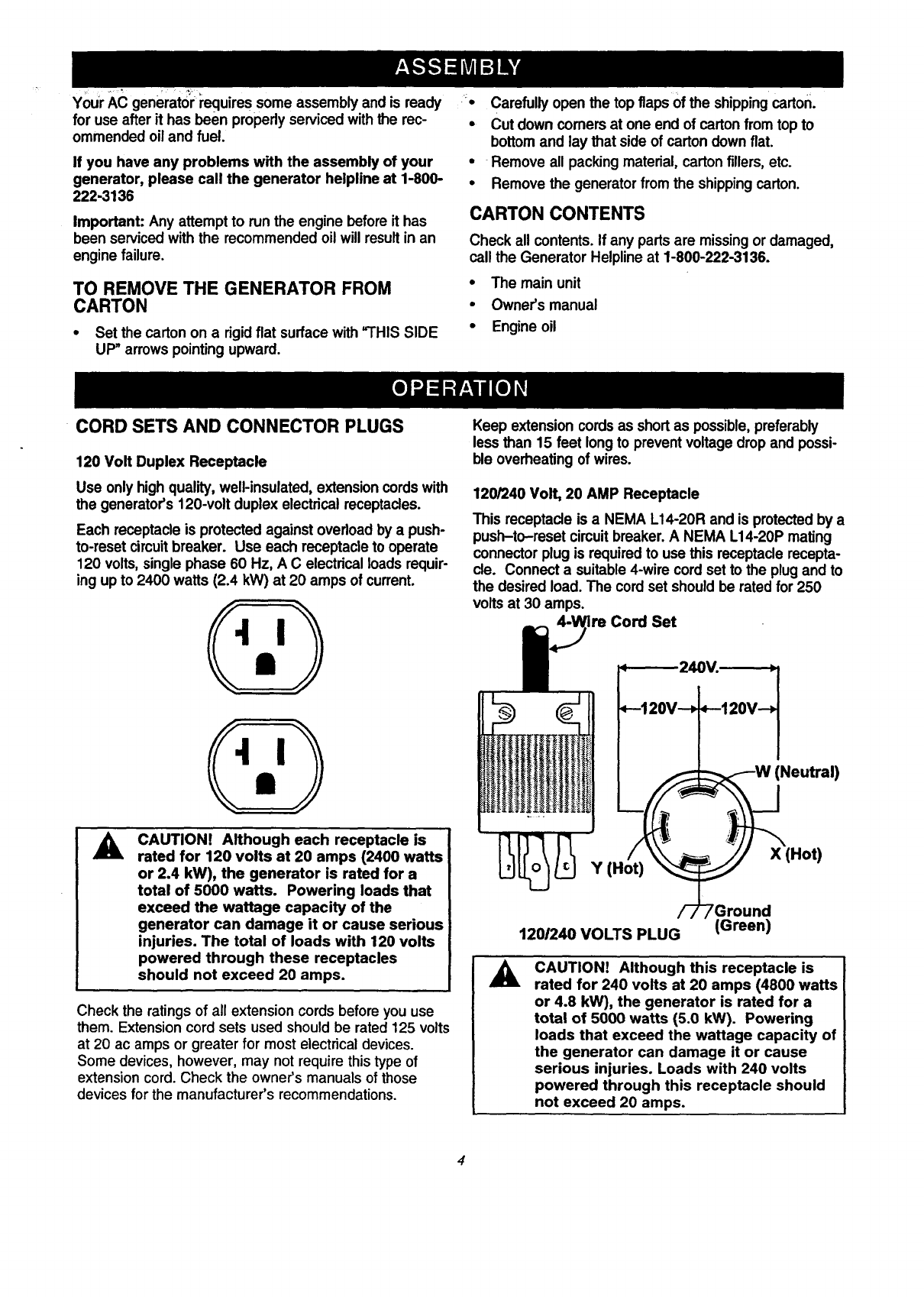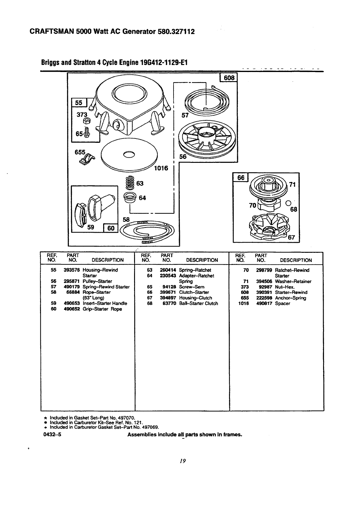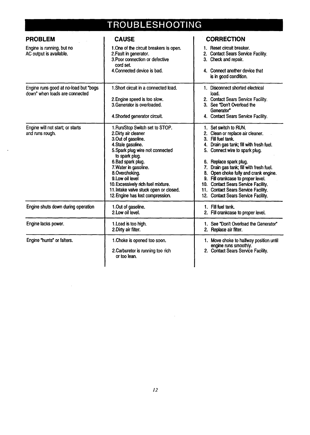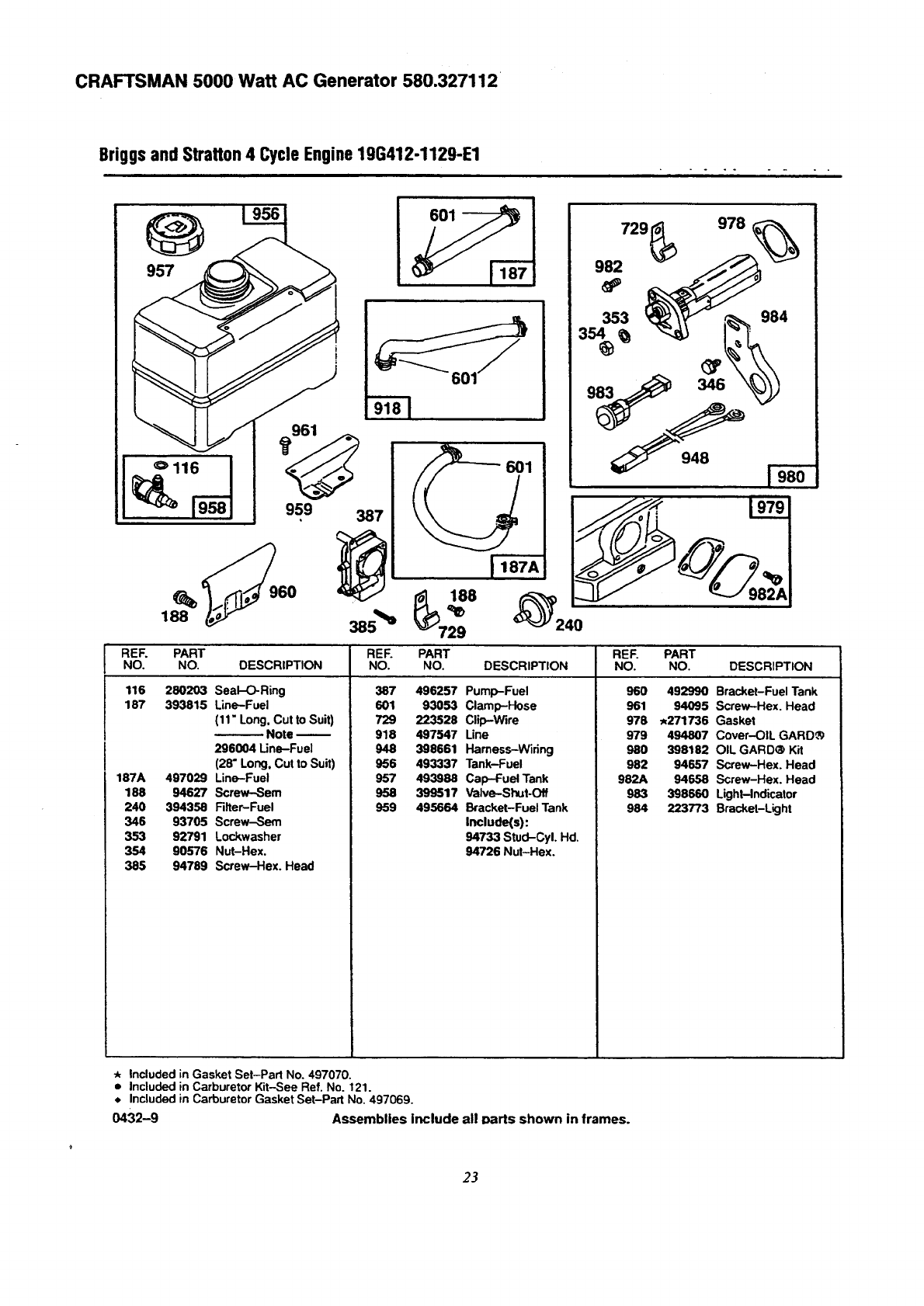 Craftsman 580327112 User Manual 5000 WATT A C GENERATOR Manuals And Guides 98100016