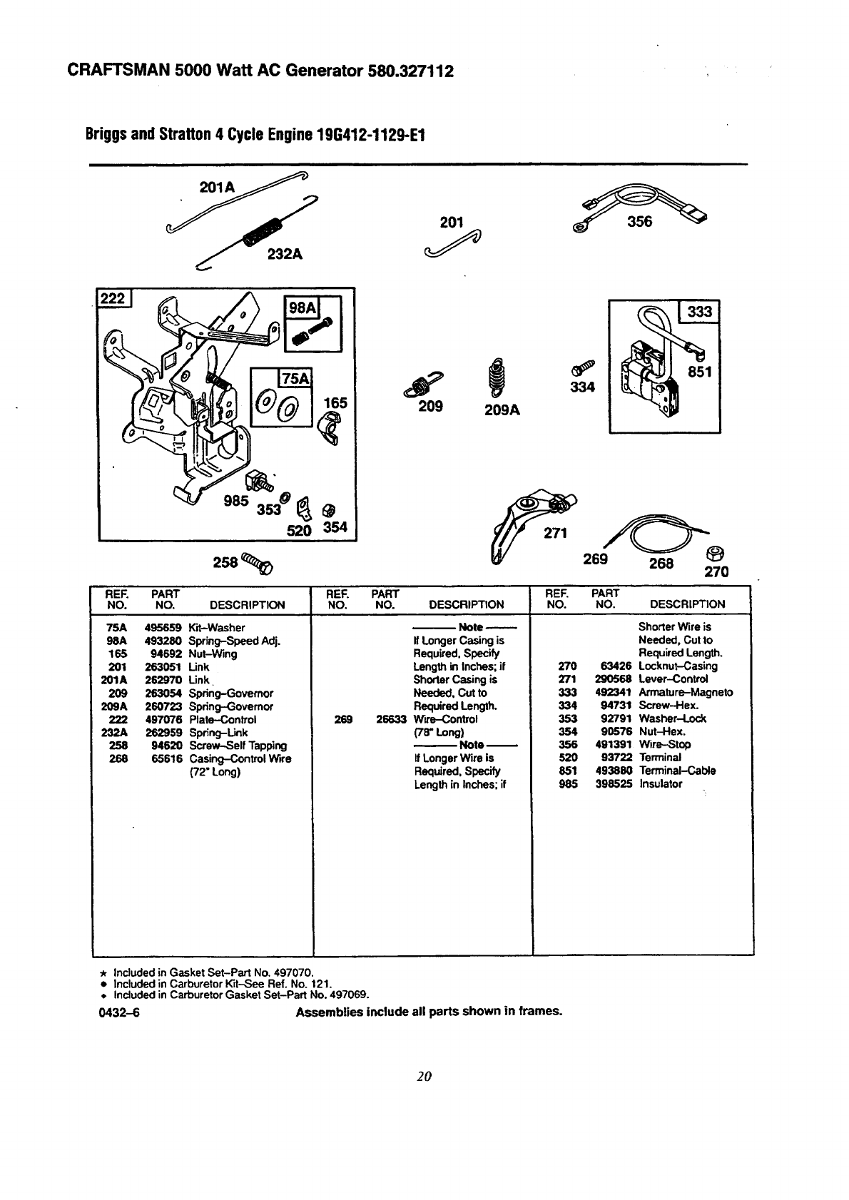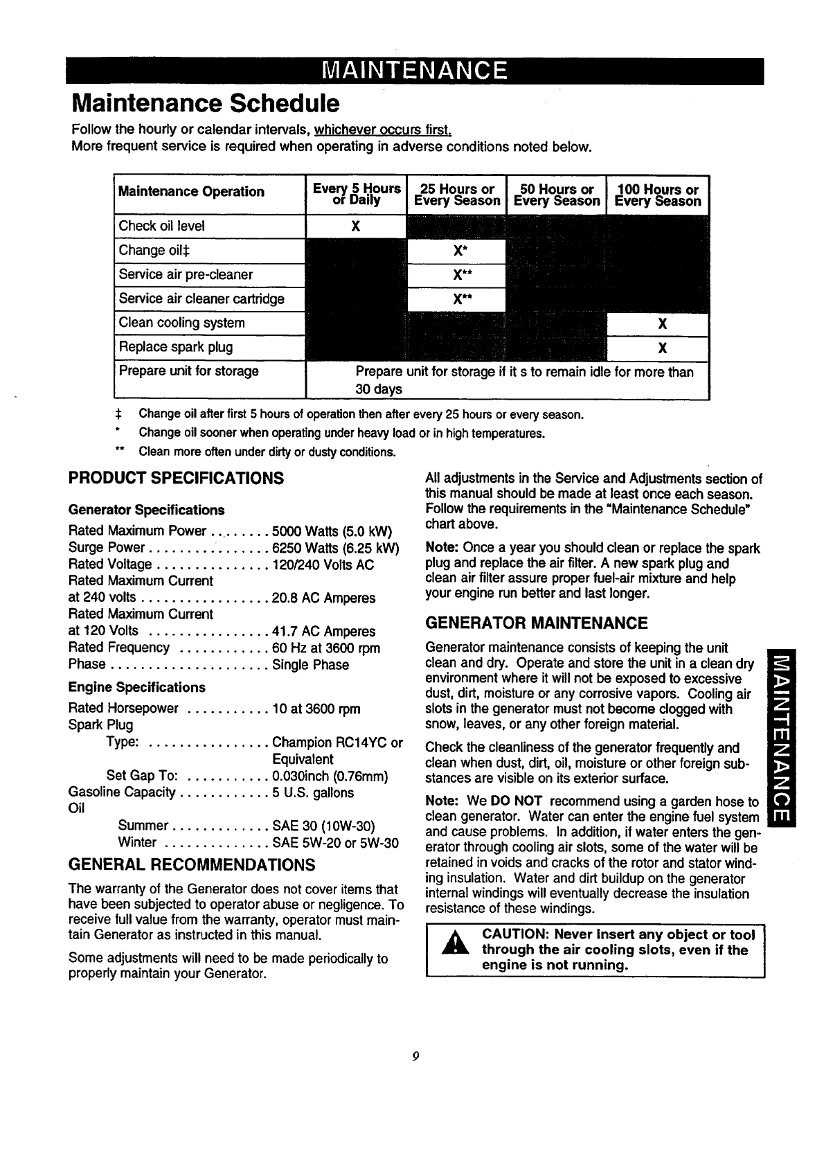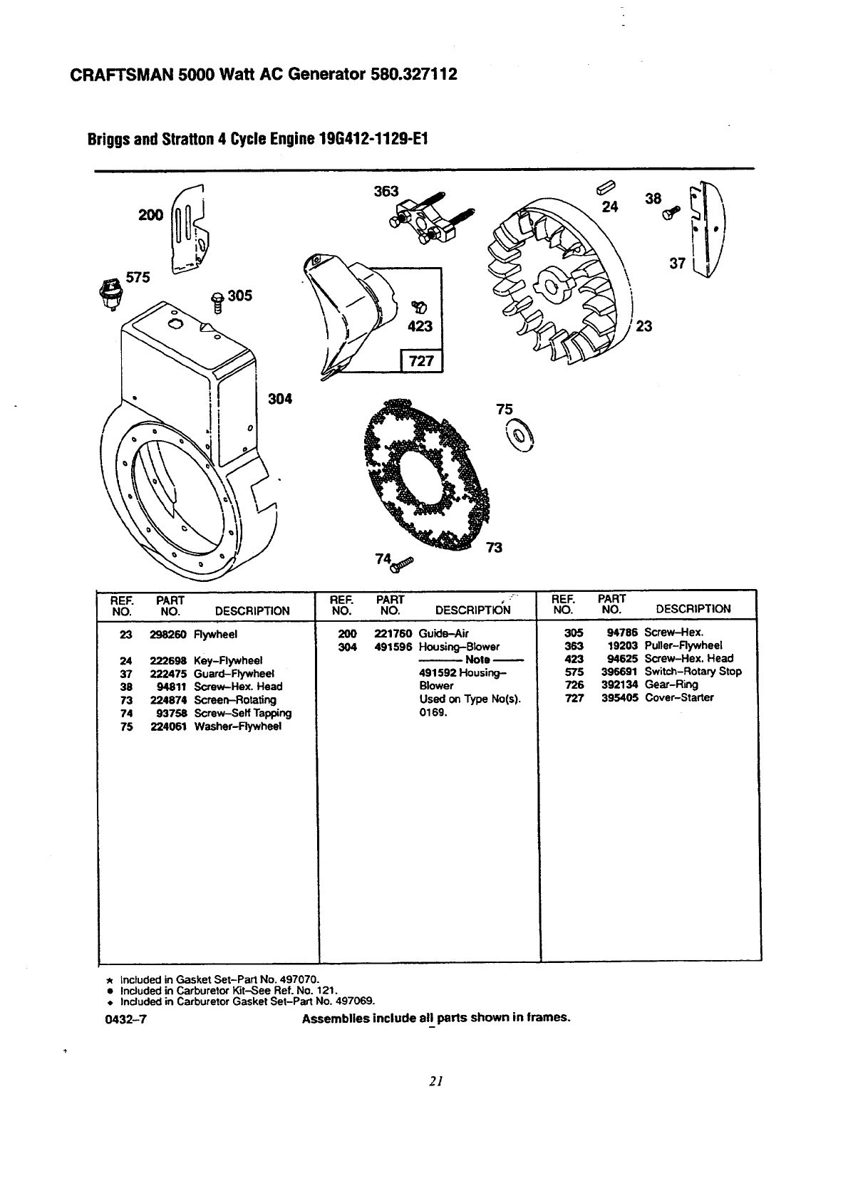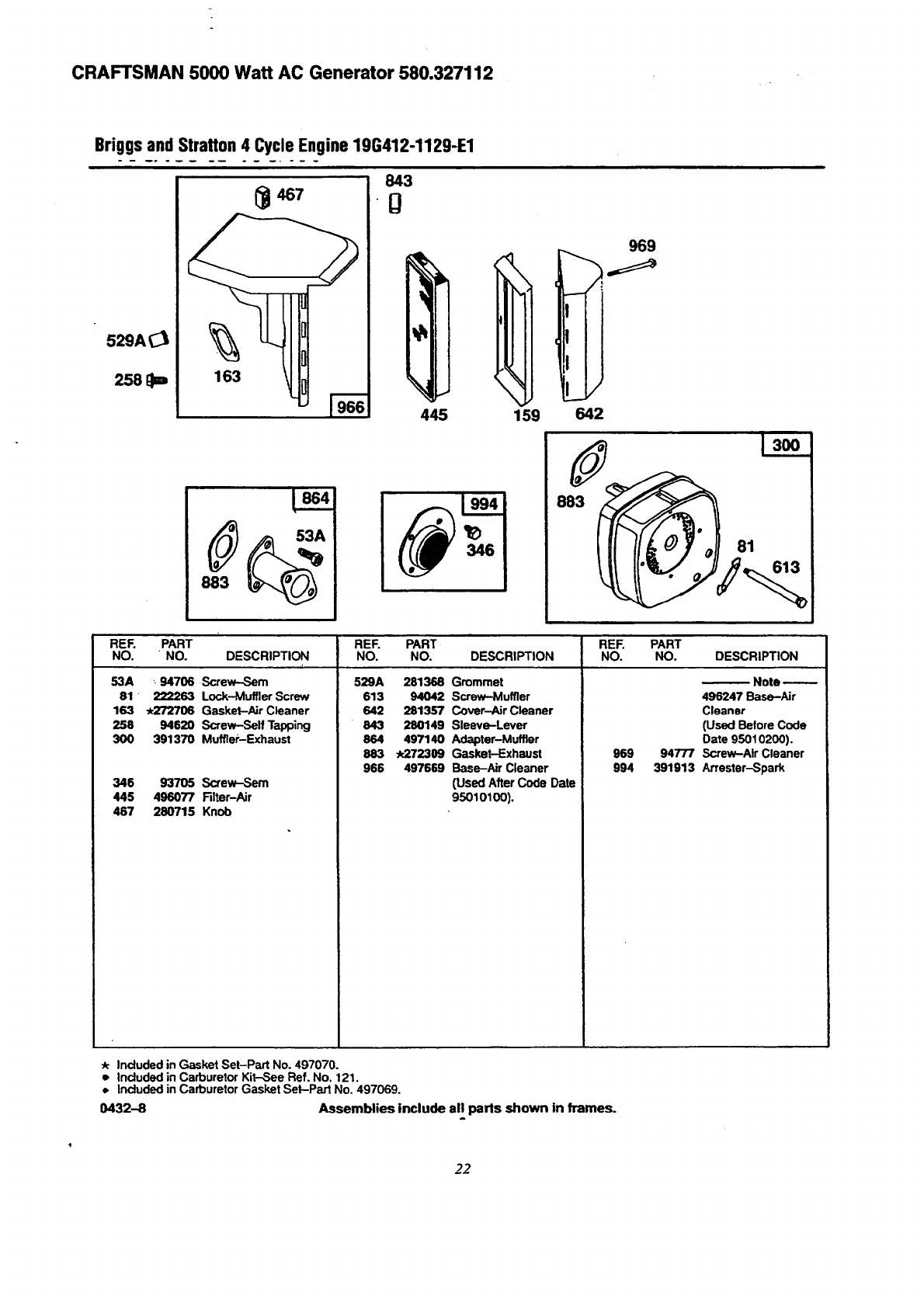 Craftsman 580327112 User Manual 5000 WATT A C GENERATOR Manuals And Guides 98100016