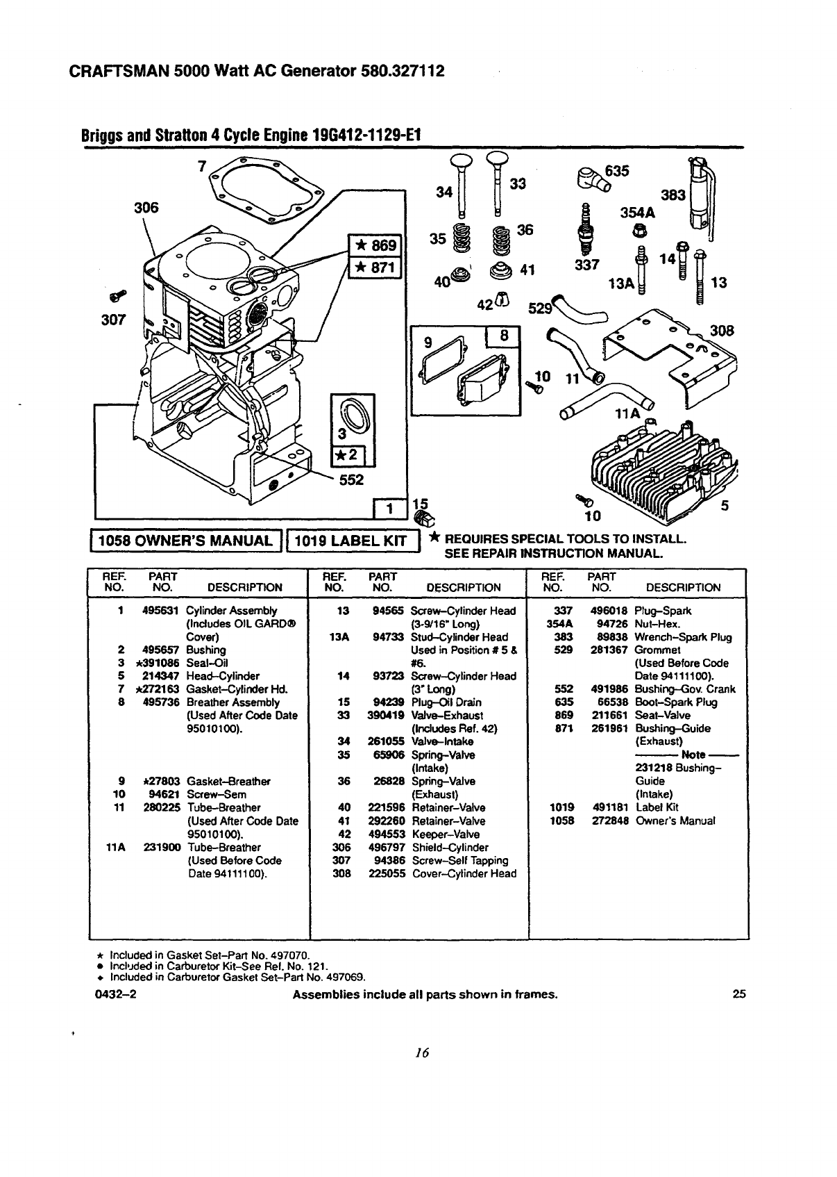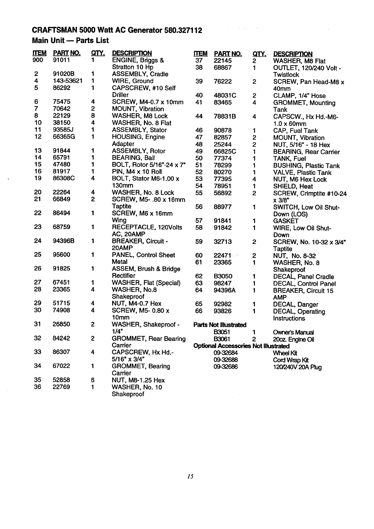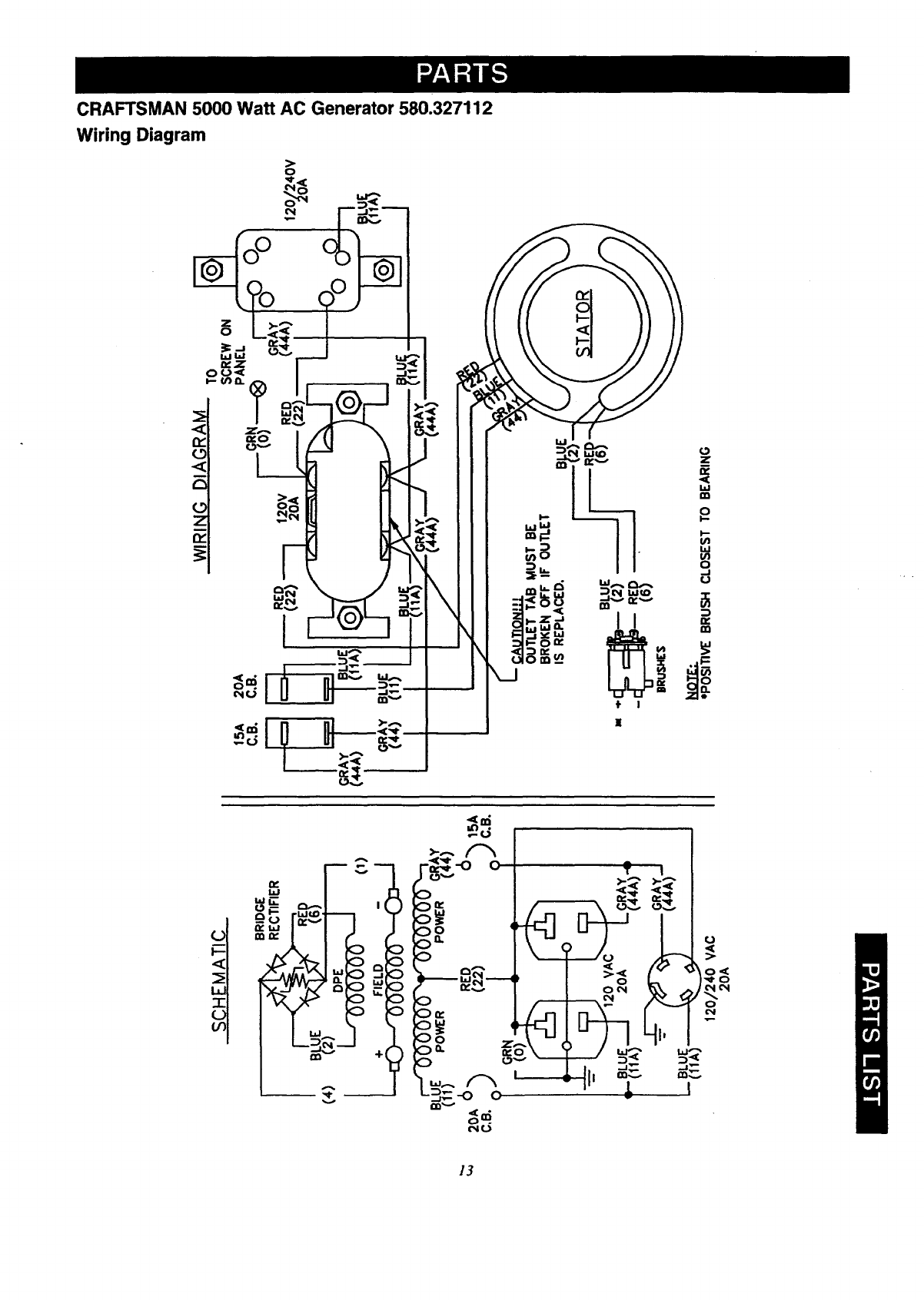 User Manual: Craftsman 580327112 580327112 CRAFTSMAN 5000 WATT A-C GENERATOR - Manuals and Guides View the owners manual for your CRAFTSMAN 5000 WATT A-C GENERATOR #580327112. Home:Tool Parts:Craftsman Parts:Craftsman 5000 WATT A-C GENERATOR Manual