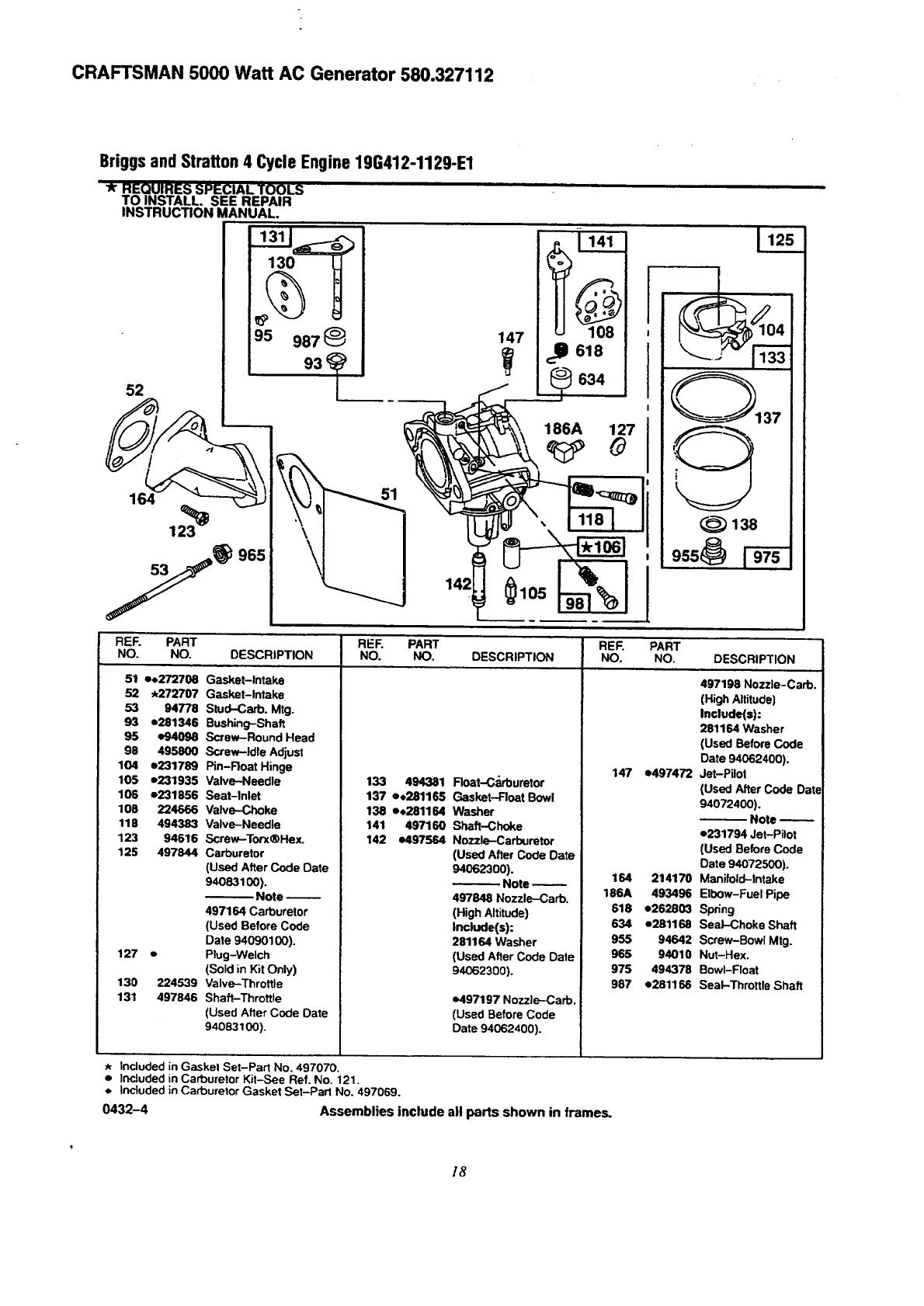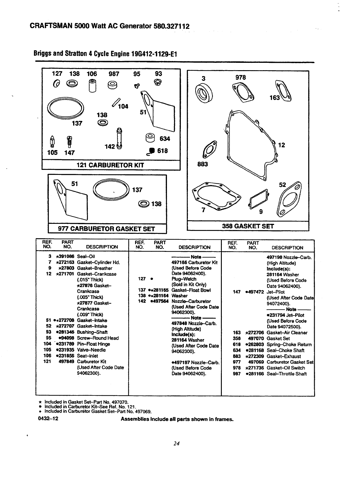 • Included in Carburetor Gasket Set-Part No. 497069.