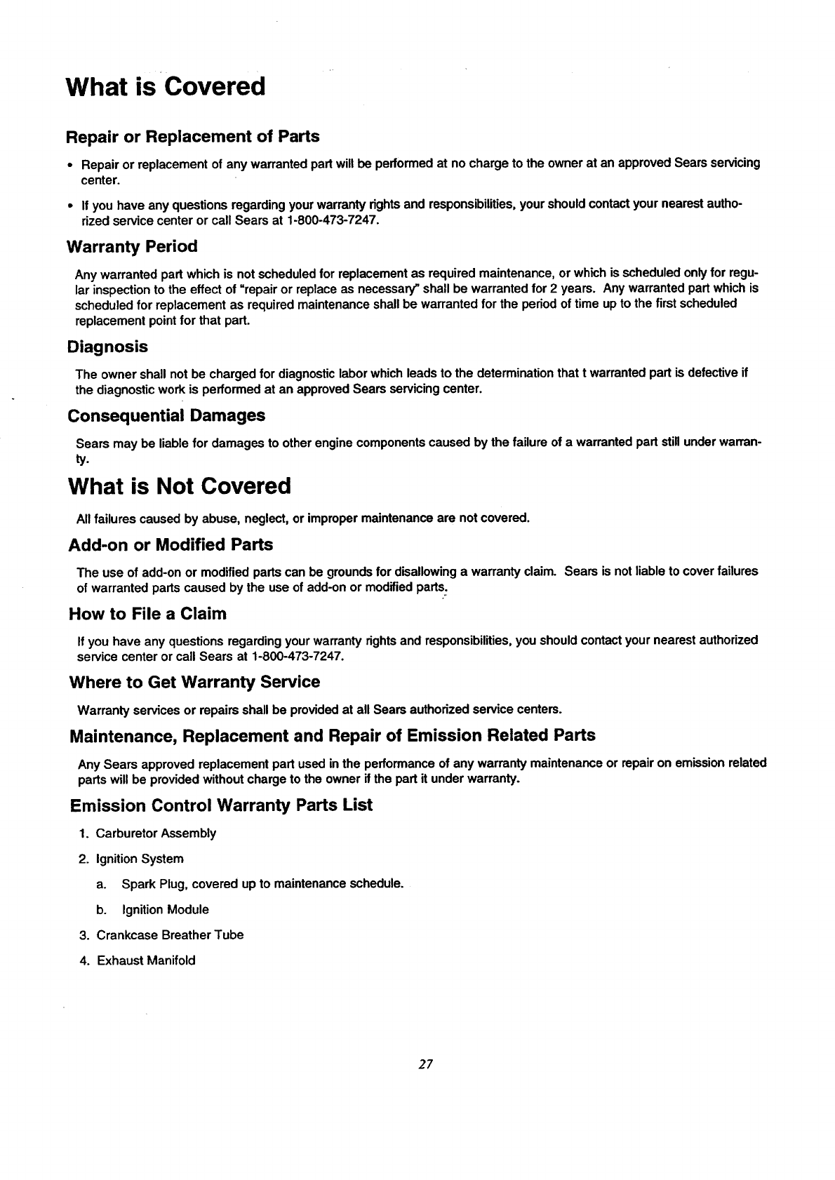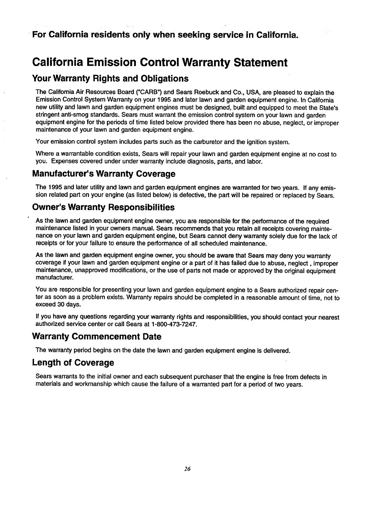 stringent anti-smog standards. Sears must warrant the emission control system on your lawn and garden
