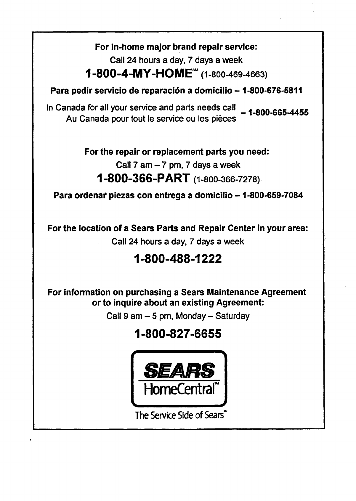 For service, see your nearest SEARS authorized warranty service facility. Warranty service can be