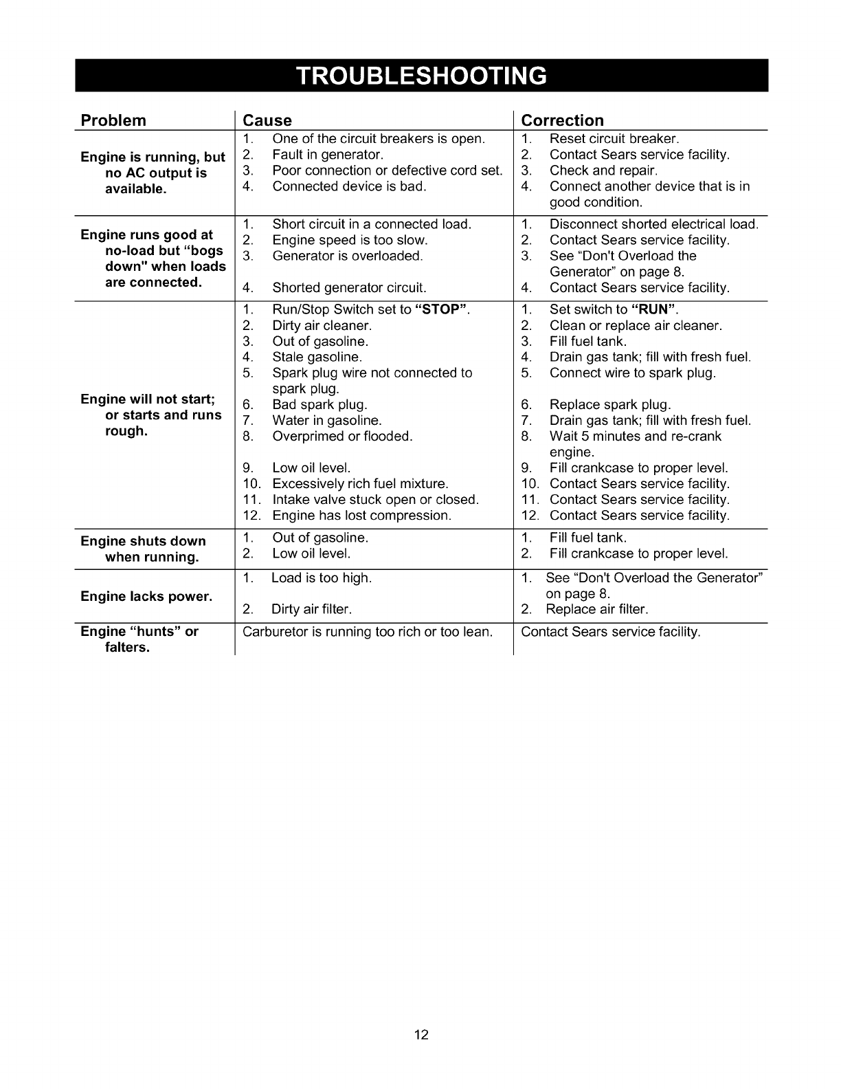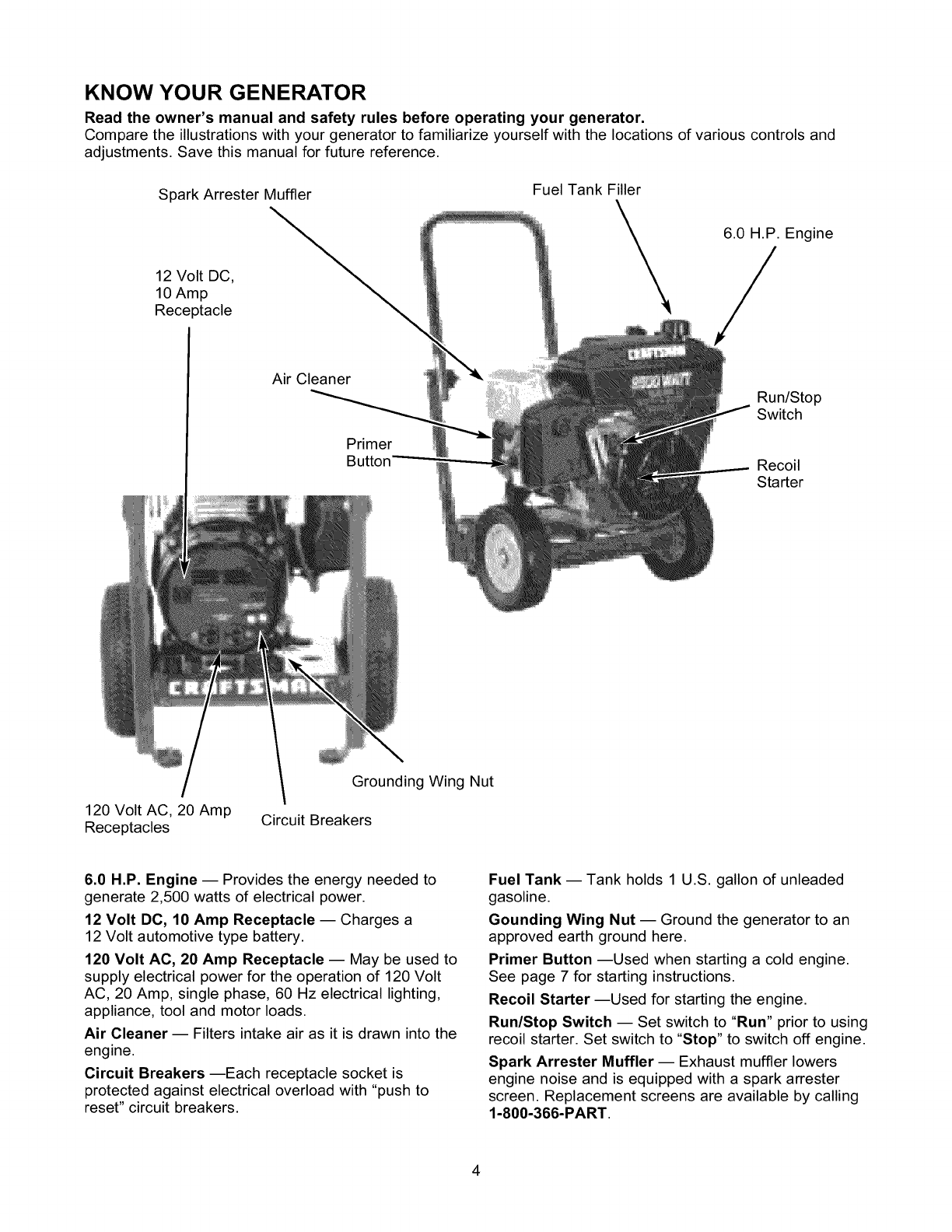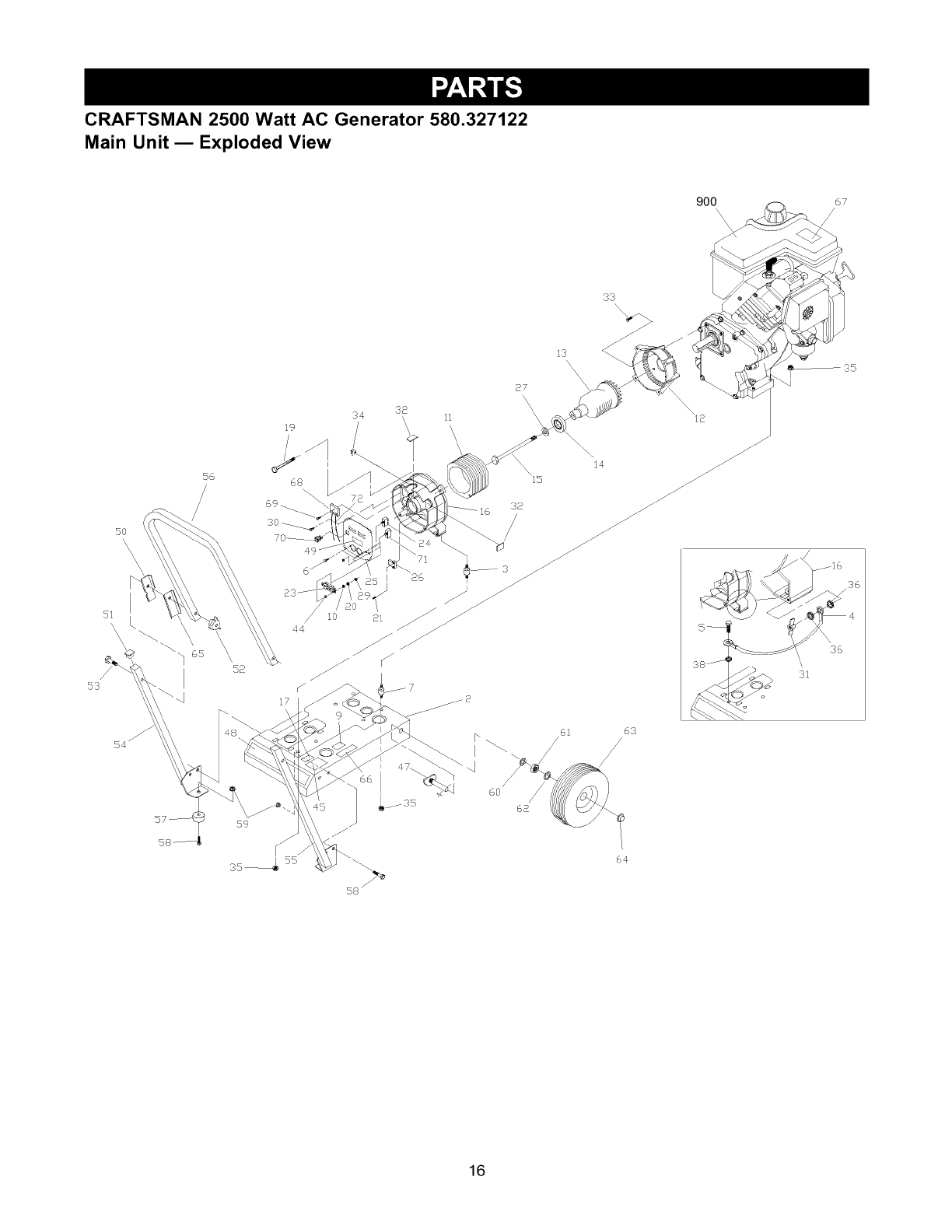 User Manual: Craftsman 580327120 580327120 CRAFTSMAN 2500W GENERATOR ON A 2 WHEEL CART - Manuals and Guides View the owners manual for your CRAFTSMAN 2500W GENERATOR ON A 2 WHEEL CART #580327120. Home:Tool Parts:Craftsman Parts:Craftsman 2500W GENERATOR ON A 2 WHEEL CART Manual