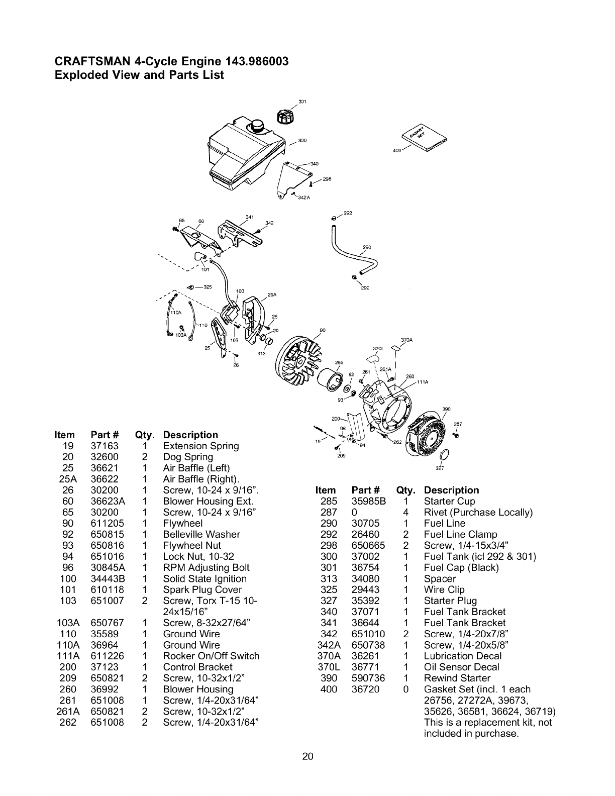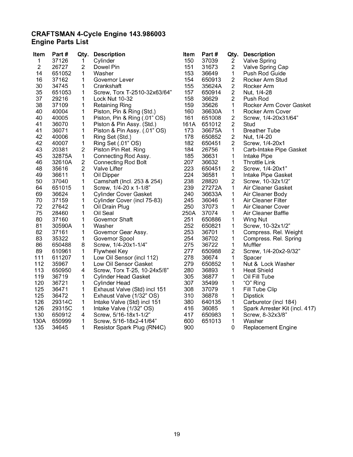** NORMAL WEAR: As with all mechanical devices, engines need periodic parts service and replacement to