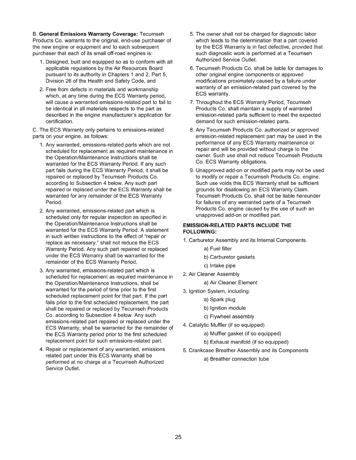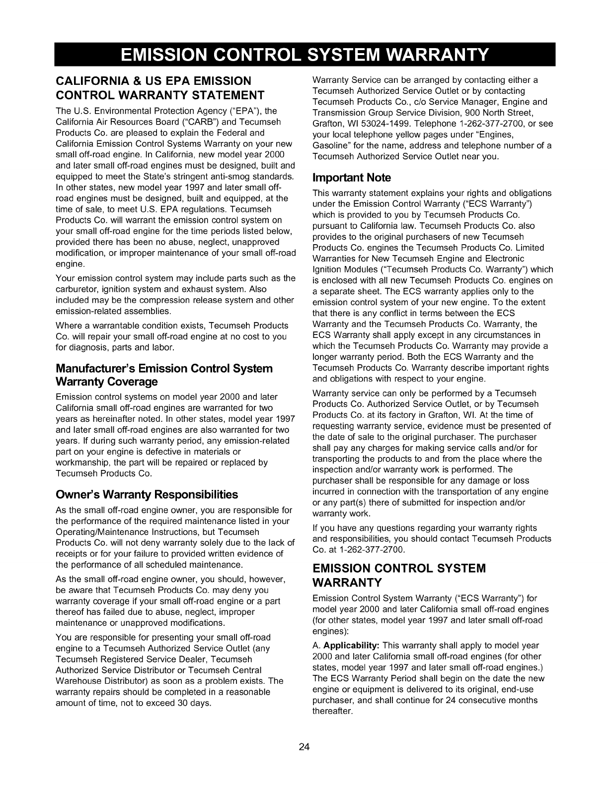 EMISSION SYSTEM WARRANTY ......... 24-25