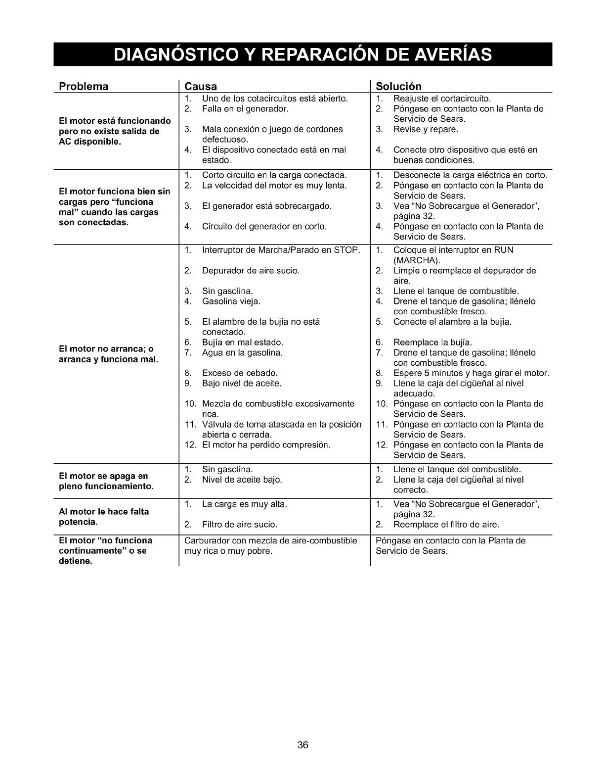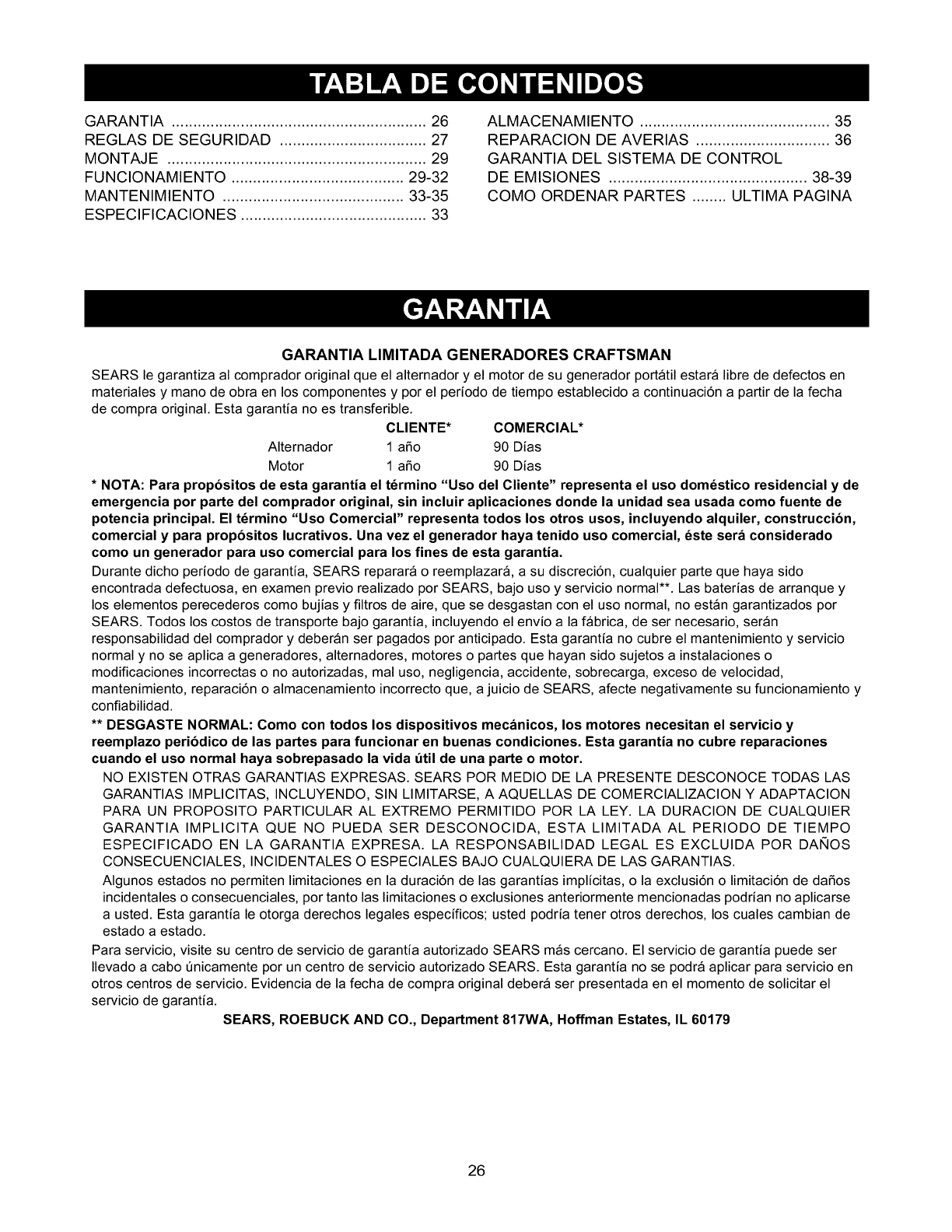 SEARS warrants to the original purchaser that the alternator and engine for its portable generator will be free