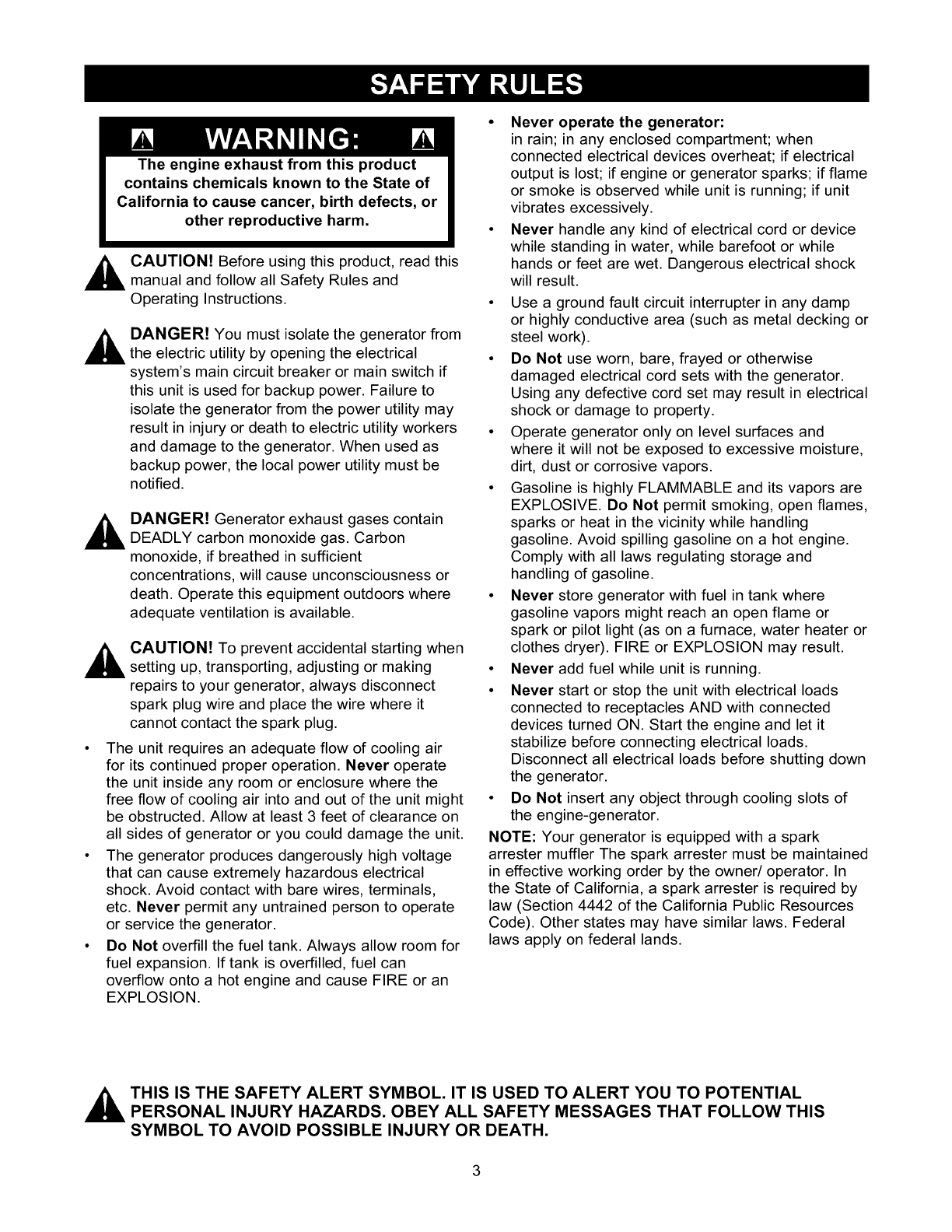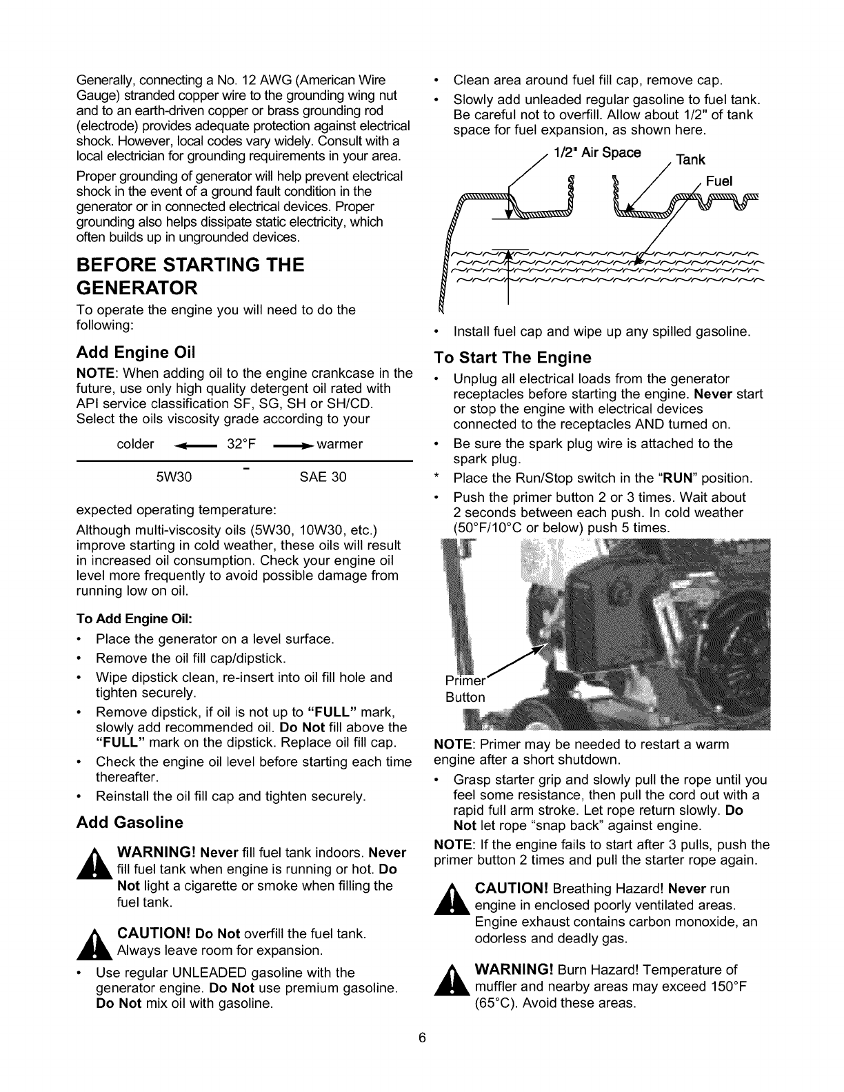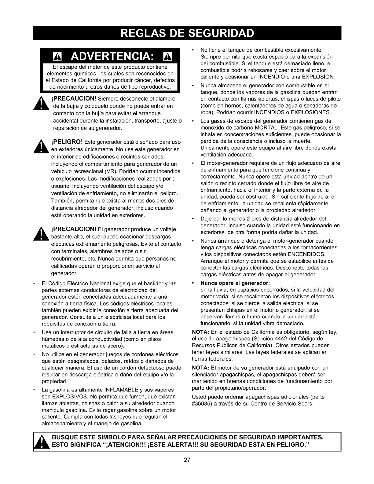 CRAFTSMAN Generator Manual L0208250 CRAFTSMAN Generator Owner's Manual, CRAFTSMAN Generator installation guides