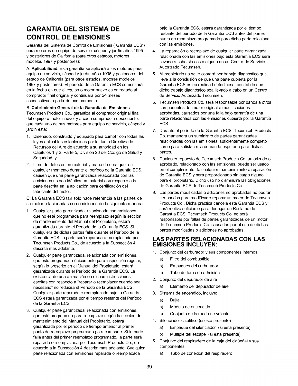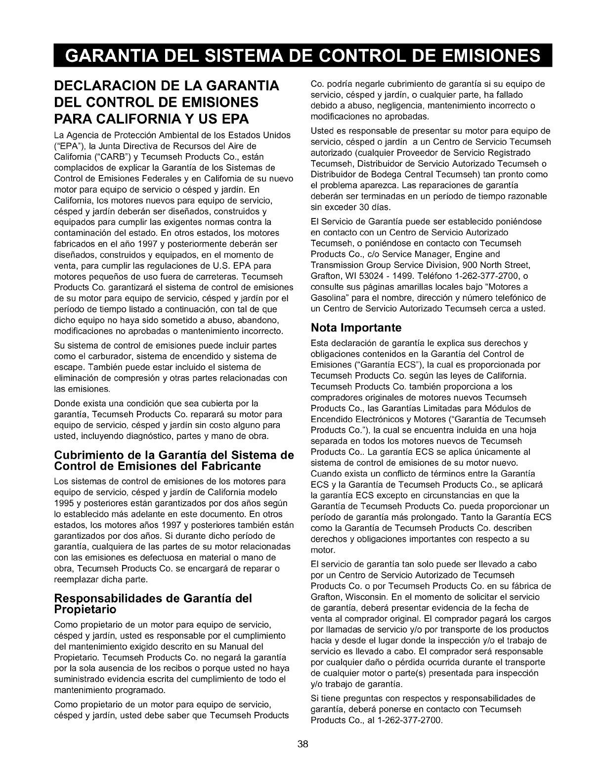 7. Durante el periodo de la Garantia ECS, Tecumseh Products