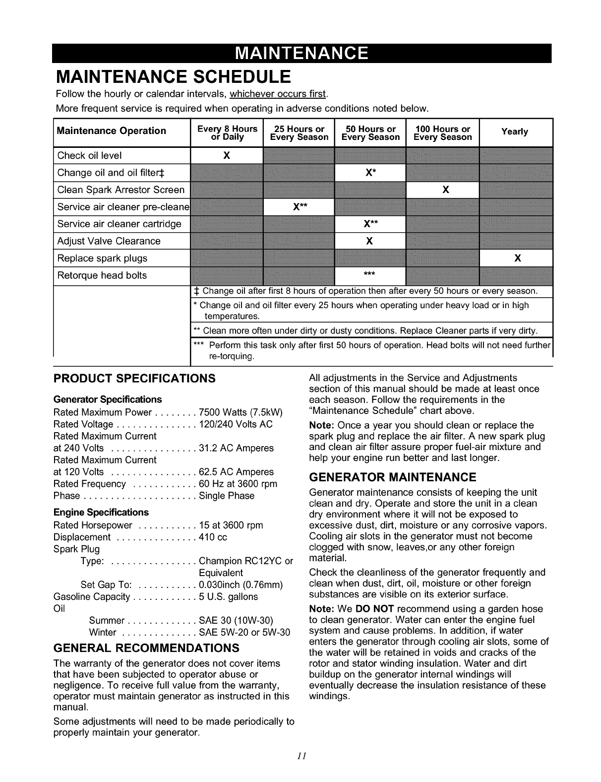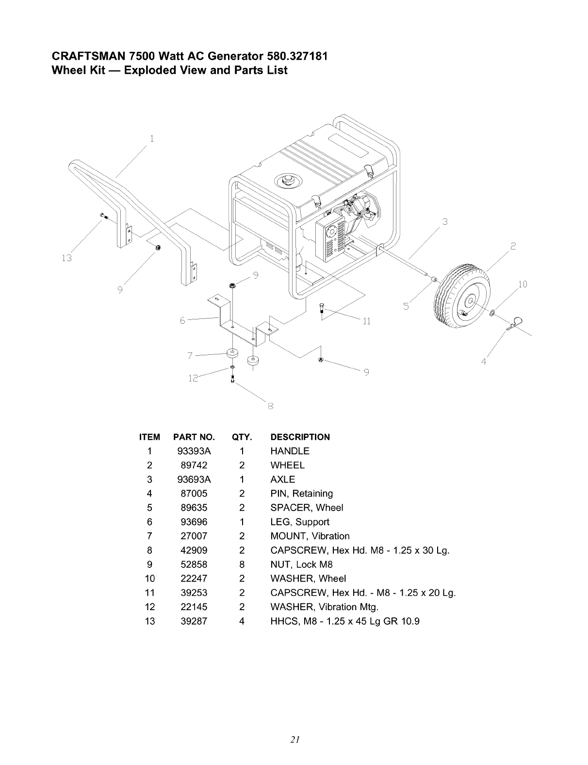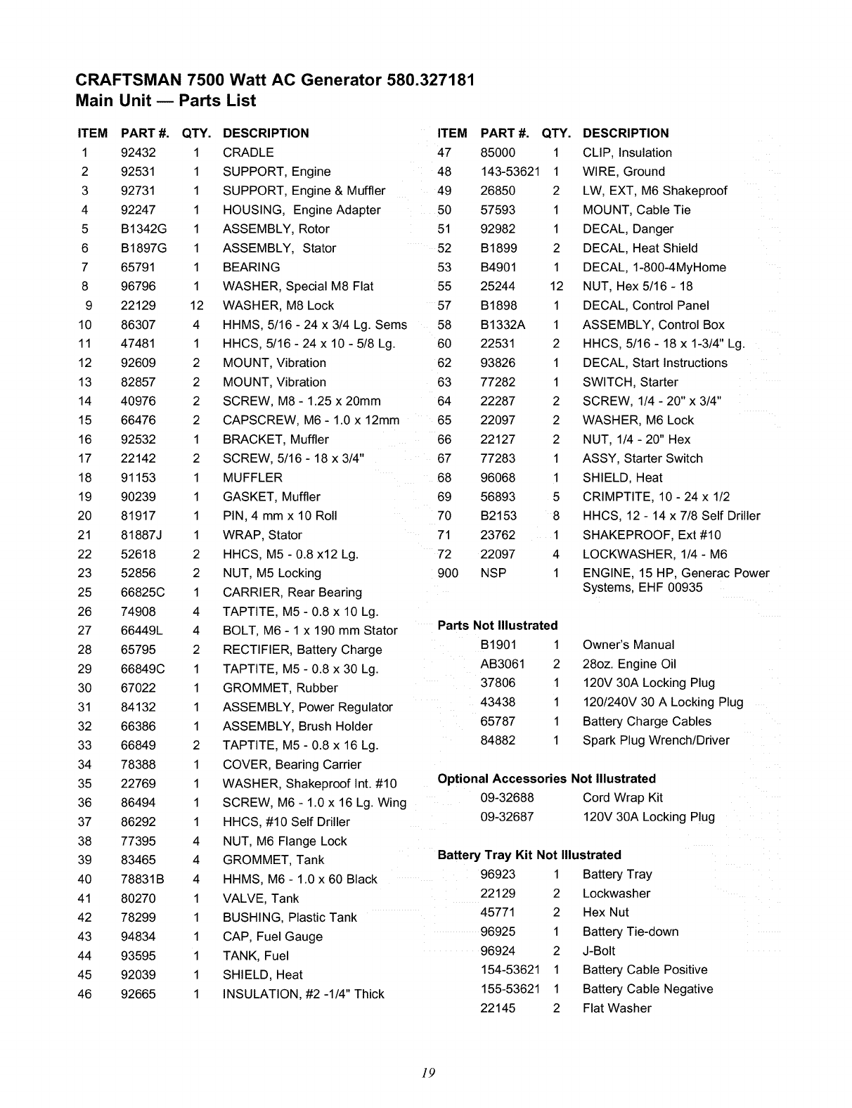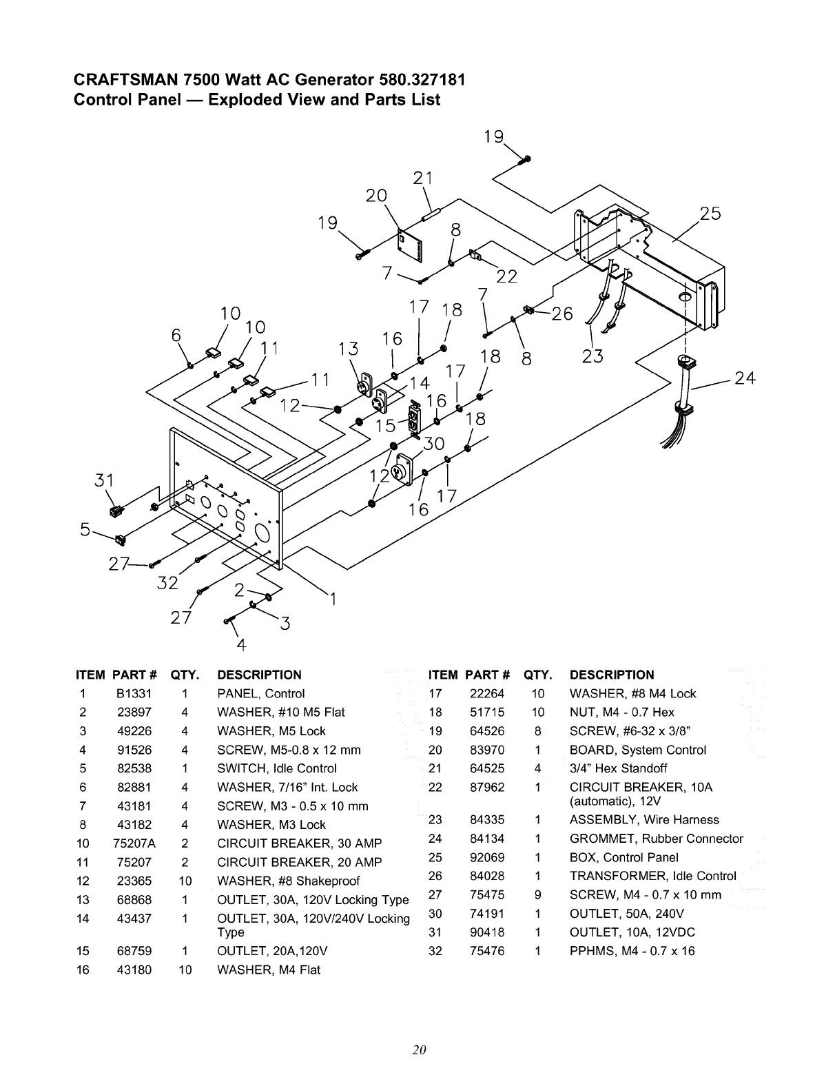 User Manual: Craftsman 580327181 580327181 CRAFTSMAN CRAFTSMAN 7500 WATT AC GENERATOR - Manuals and Guides View the owners manual for your CRAFTSMAN CRAFTSMAN 7500 WATT AC GENERATOR #580327181. Home:Tool Parts:Craftsman Parts:Craftsman CRAFTSMAN 7500 WATT AC GENERATOR Manual