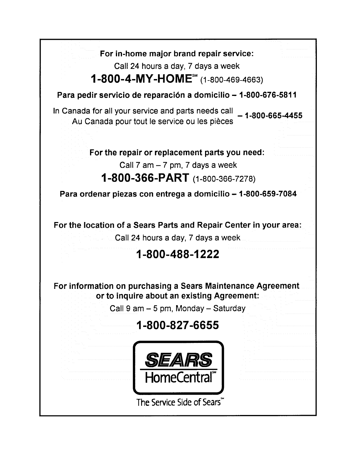 For information on purchasing a Sears Maintenance Agreement