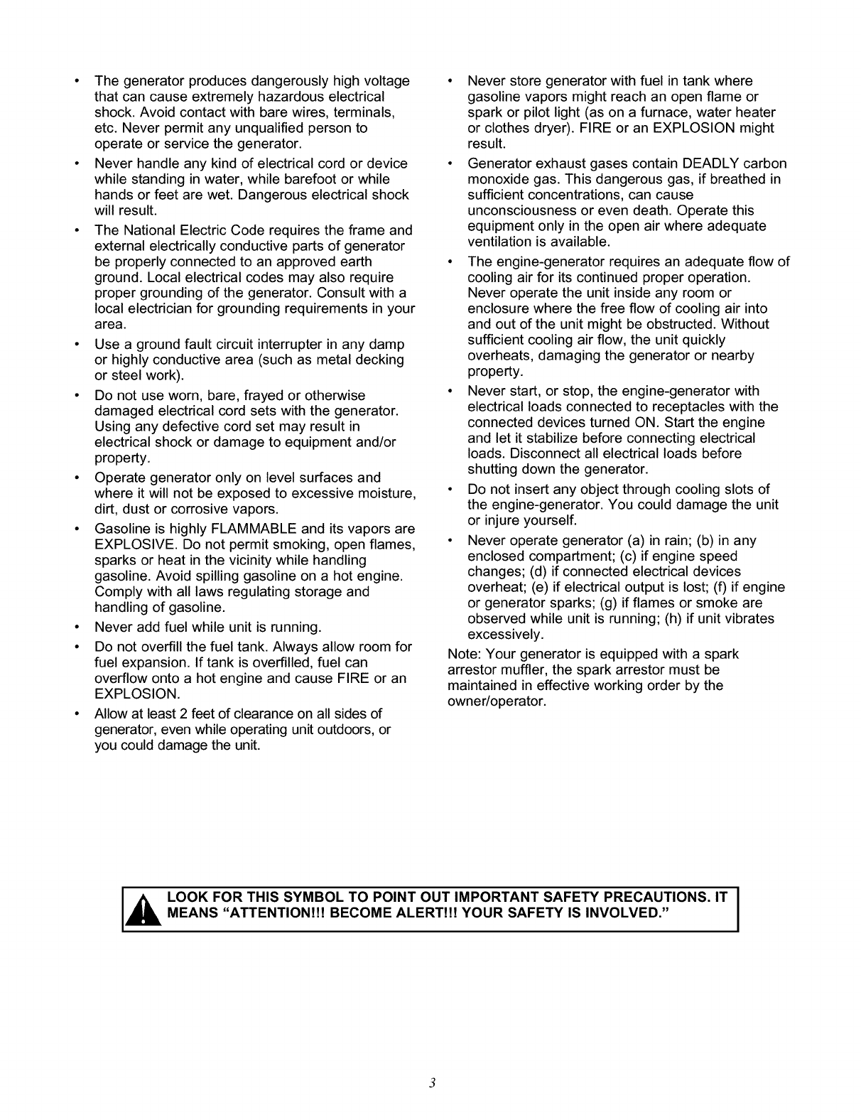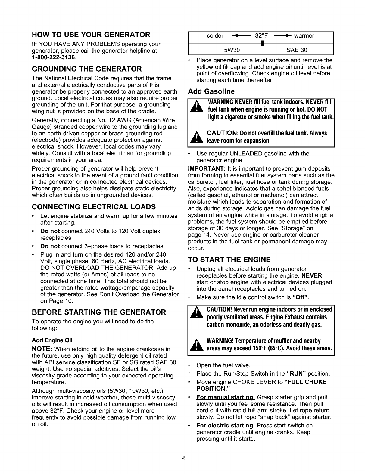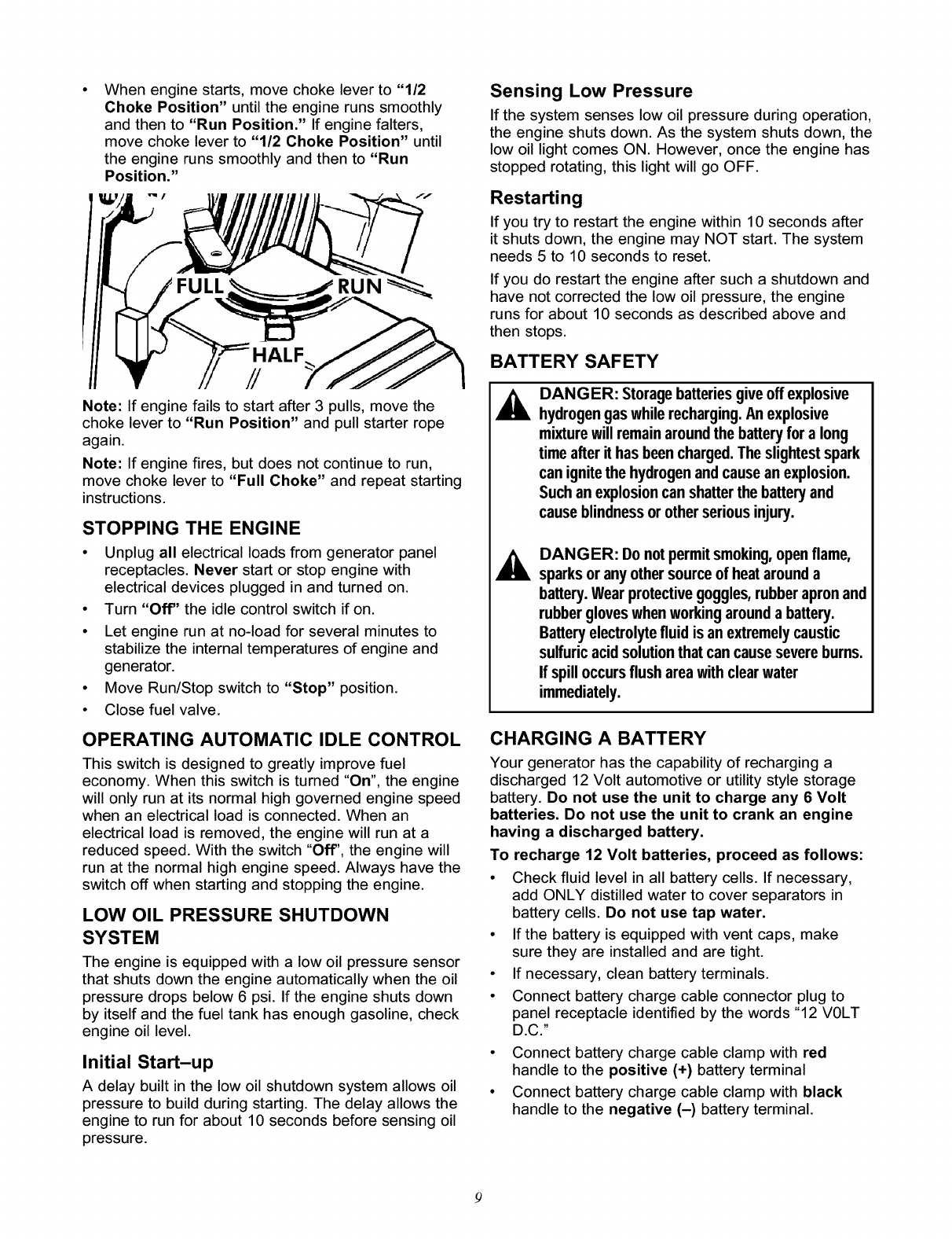preventaccidentalstartingwhen setting up, transporting,adjustingor makingrepairsto your generator.