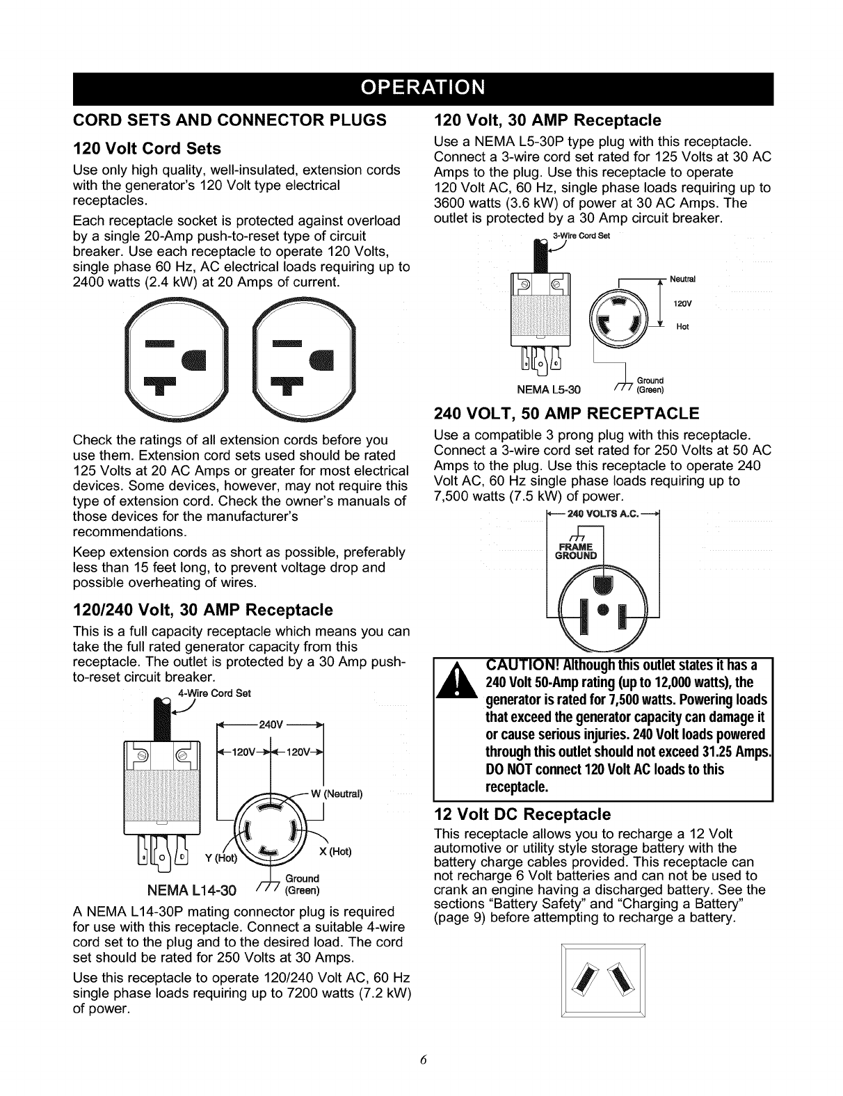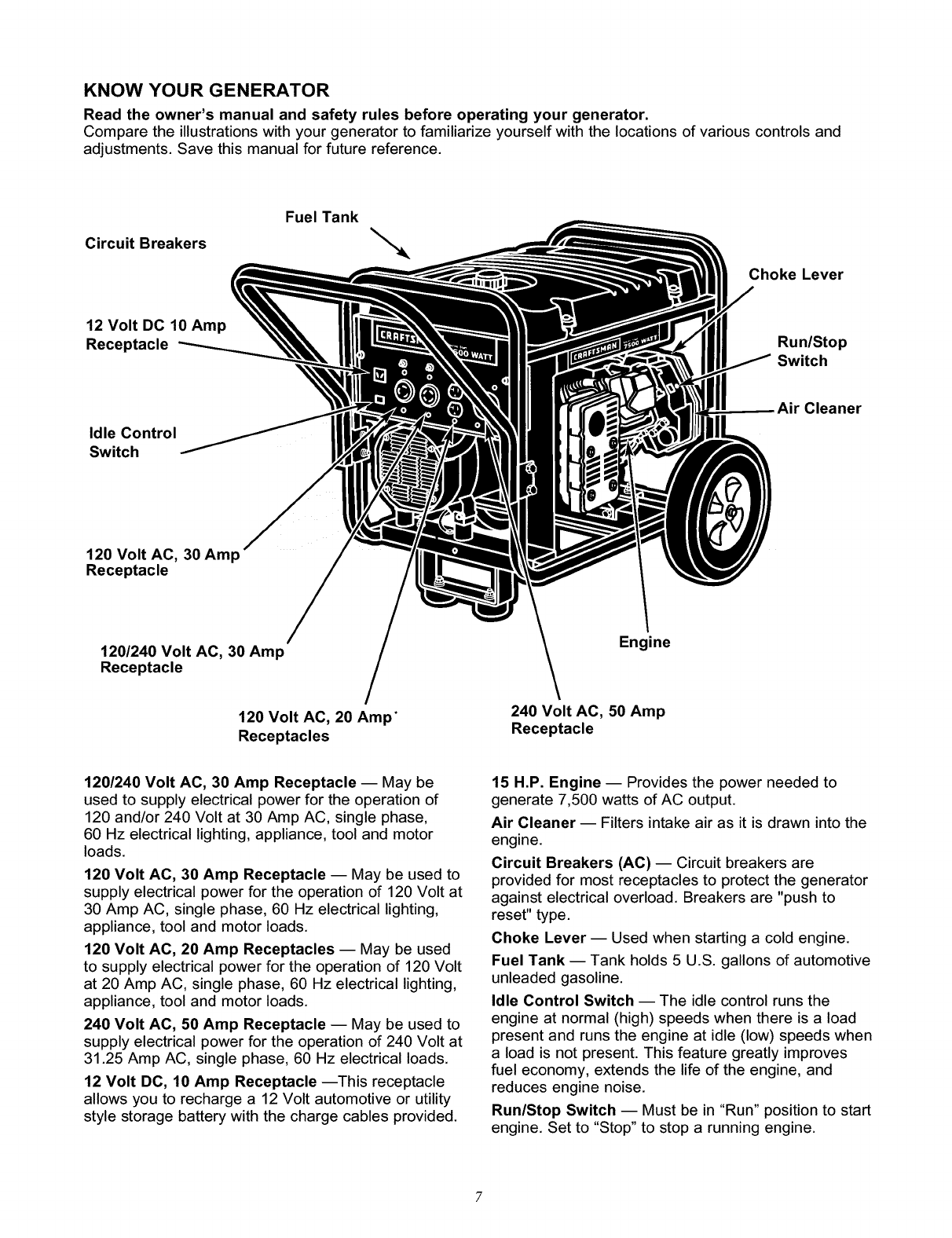 Craftsman 580327181 User Manual 7500 WATT AC GENERATOR Manuals And Guides L0208247