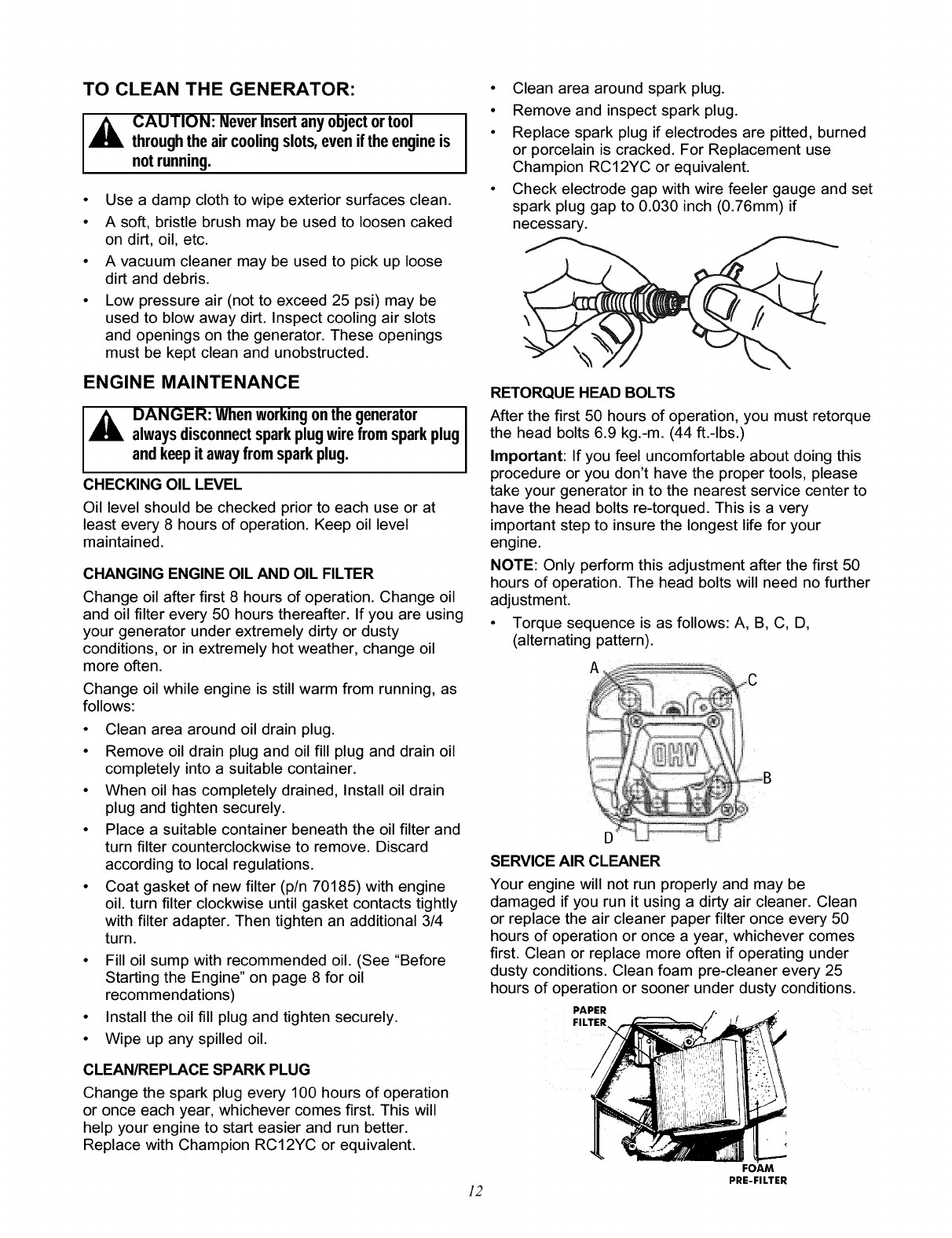 CAUTION:Alwaysdisconnectspark plugwire and placethe wire whereit cannotcontactthe spark plug. To