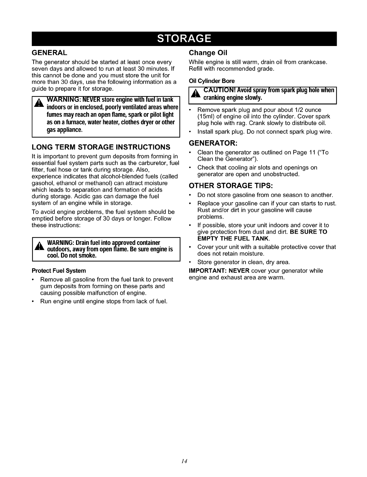 Storage ................................ 14