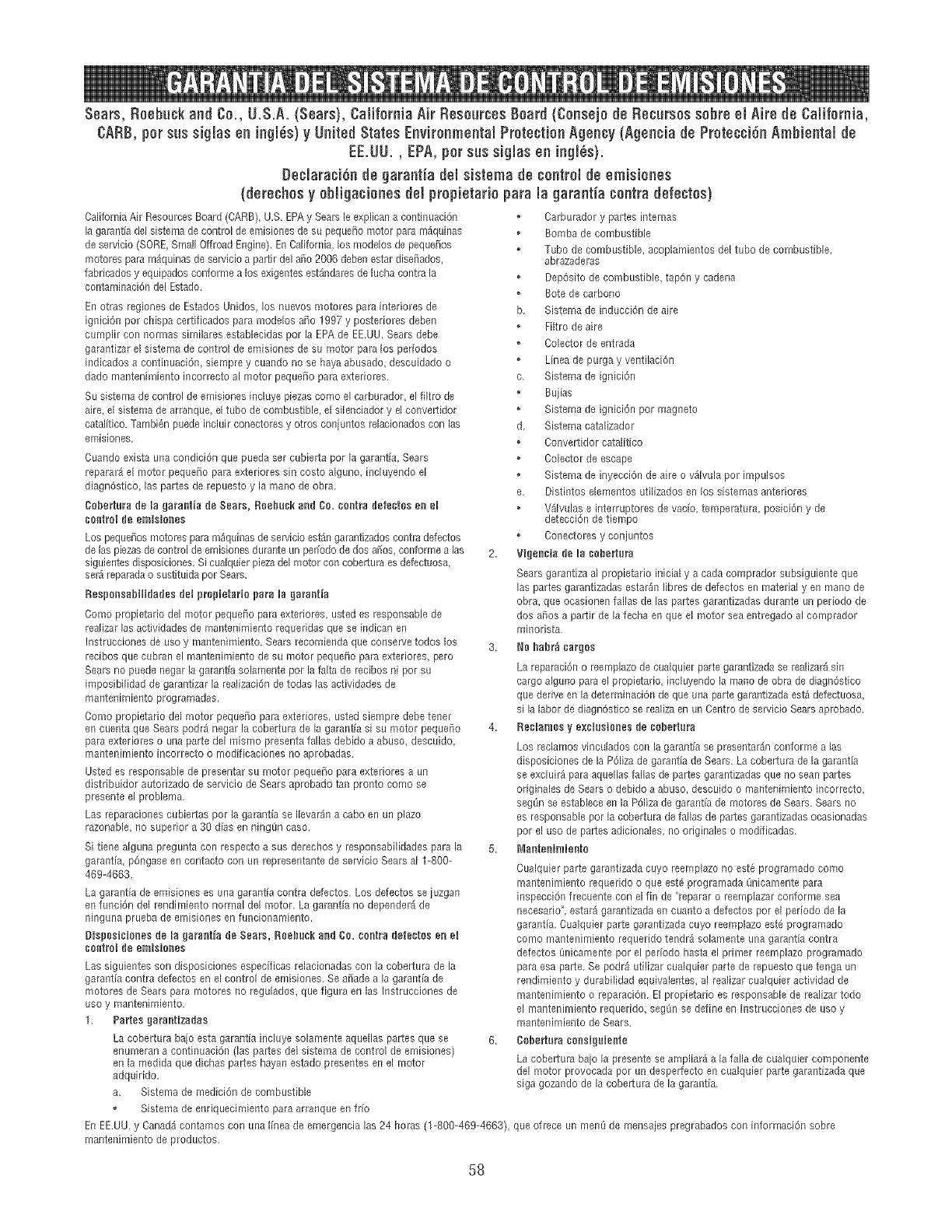 sag@ se estabbce en la Pdliza de garanth de motores de Sears. Sears no