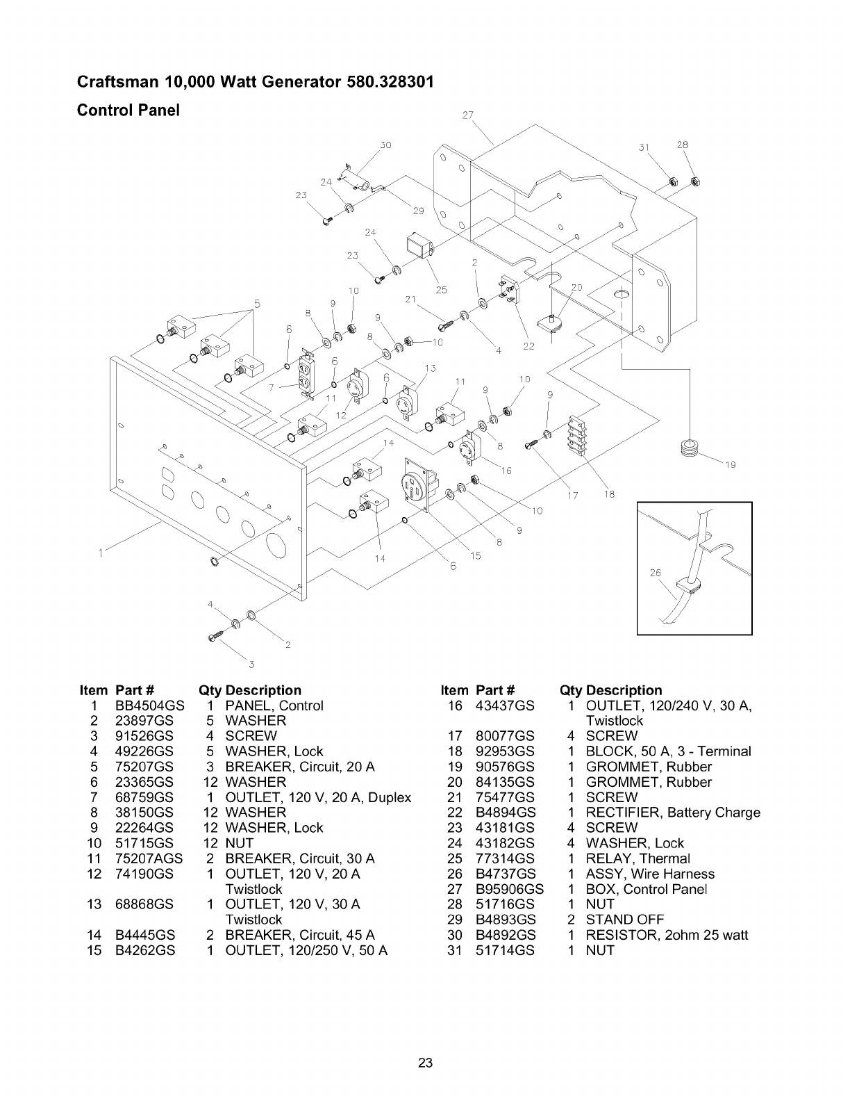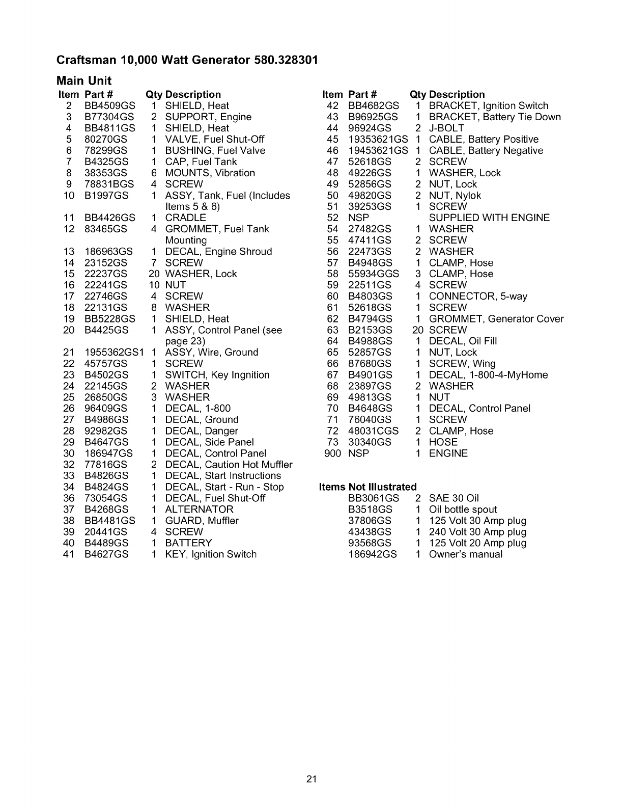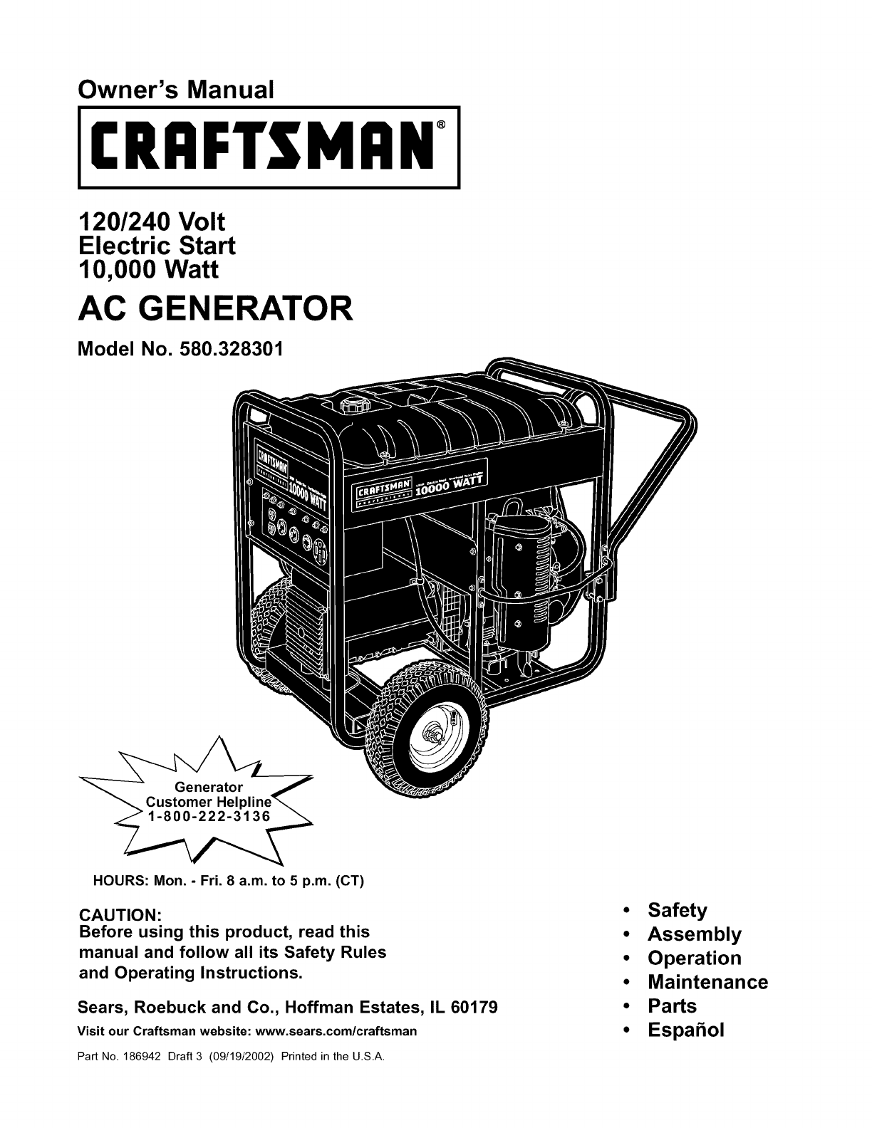User Manual: Craftsman 580328301 580328301 CRAFTSMAN AC GENERATOR - Manuals and Guides View the owners manual for your CRAFTSMAN AC GENERATOR #580328301. Home:Tool Parts:Craftsman Parts:Craftsman AC GENERATOR Manual