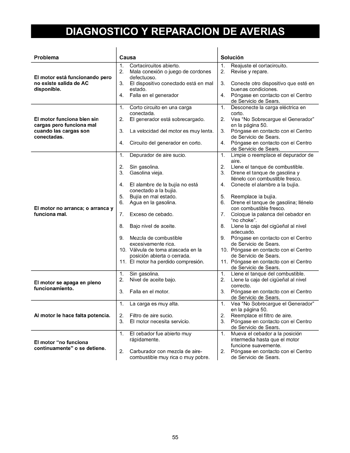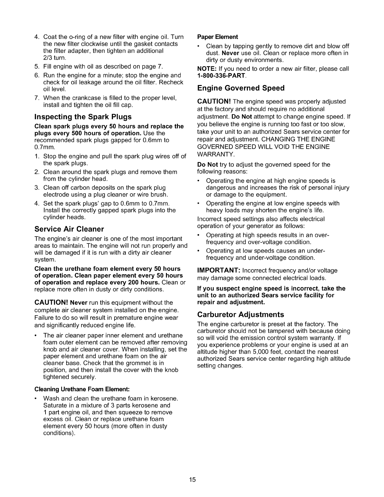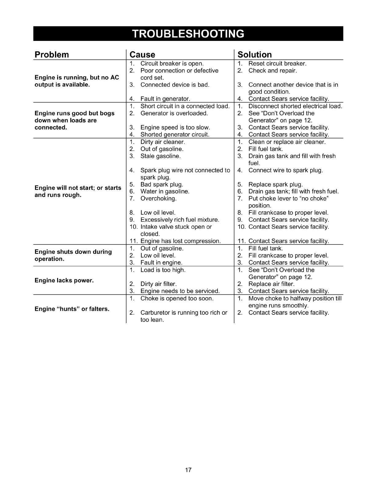 purchase. This warranty is not transferable and applies only to portable generators driven by the Sears