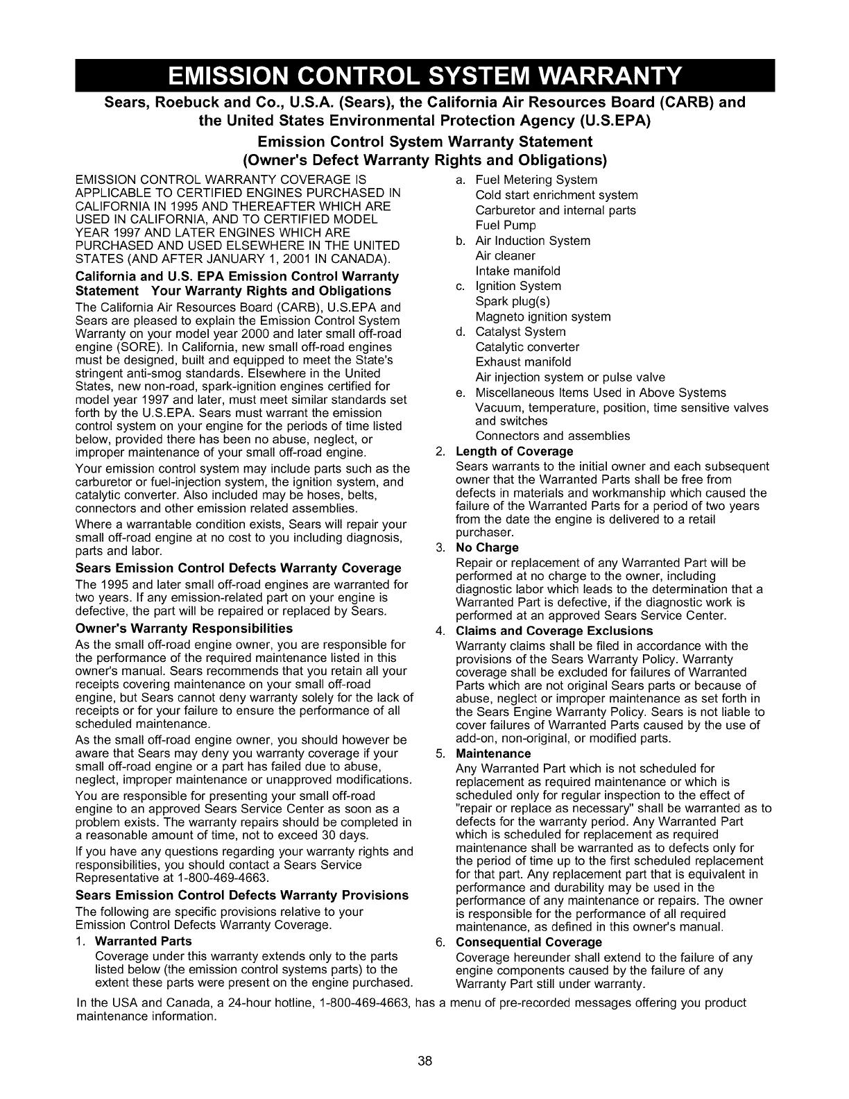 ** NORMAL WEAR: As with all mechanical devices, engines need periodic parts service and replacement to
