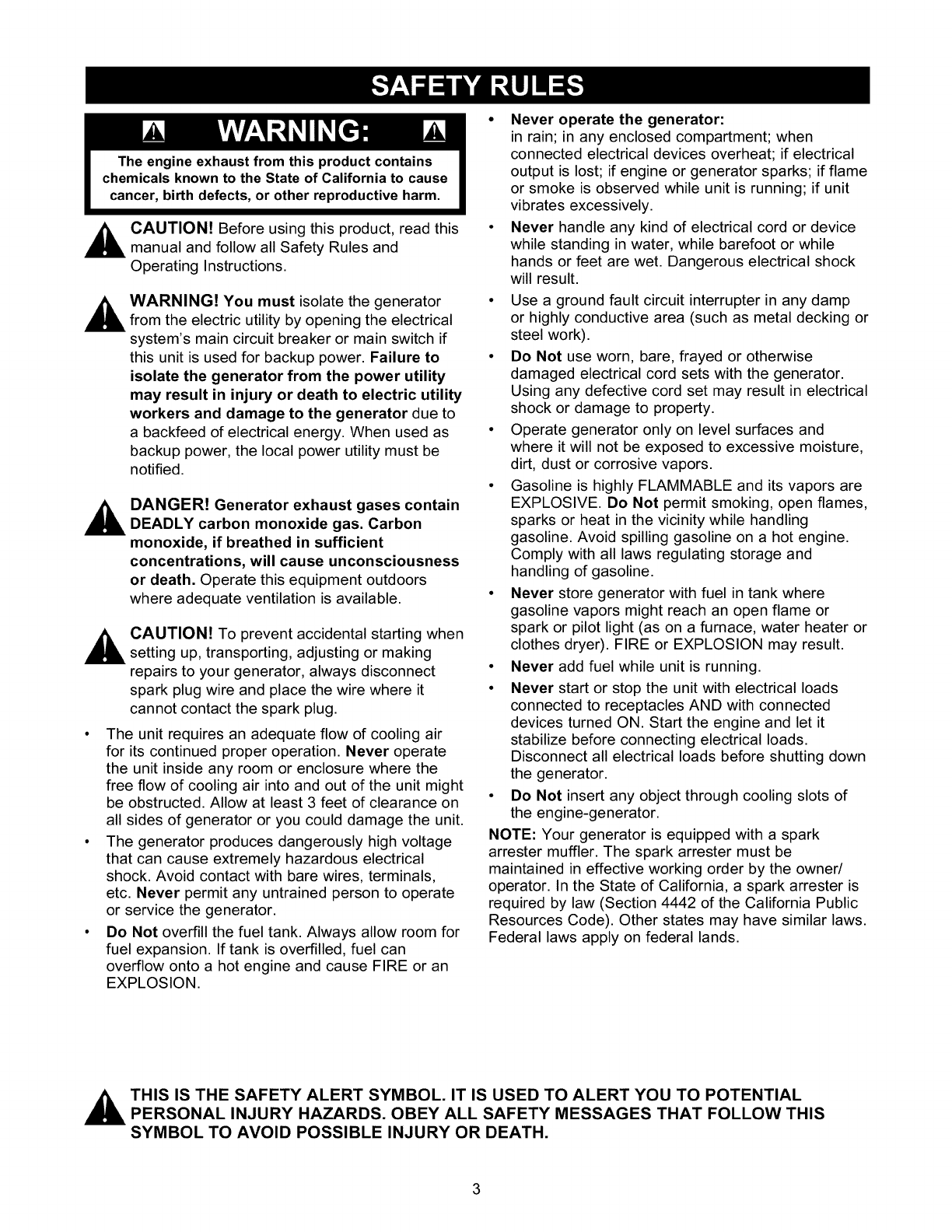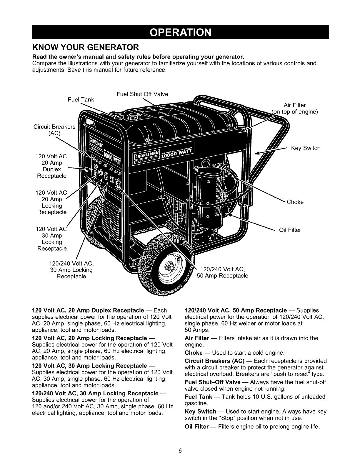 CRAFTSMAN Generator Manual L0209326 CRAFTSMAN Generator Owner's Manual, CRAFTSMAN Generator installation guides
