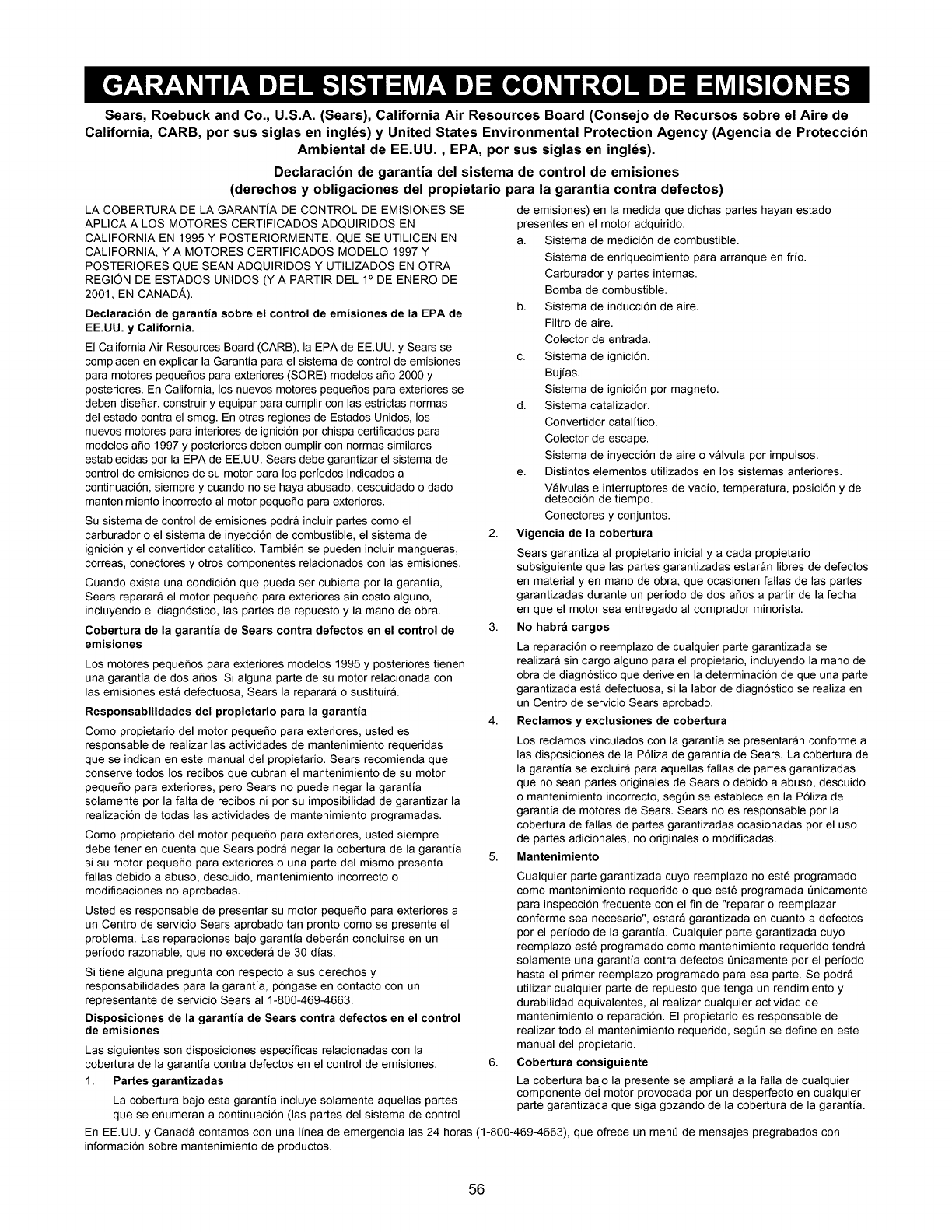 perform well. This warranty will not cover repair when normal use has exhausted the life of a part or engine.