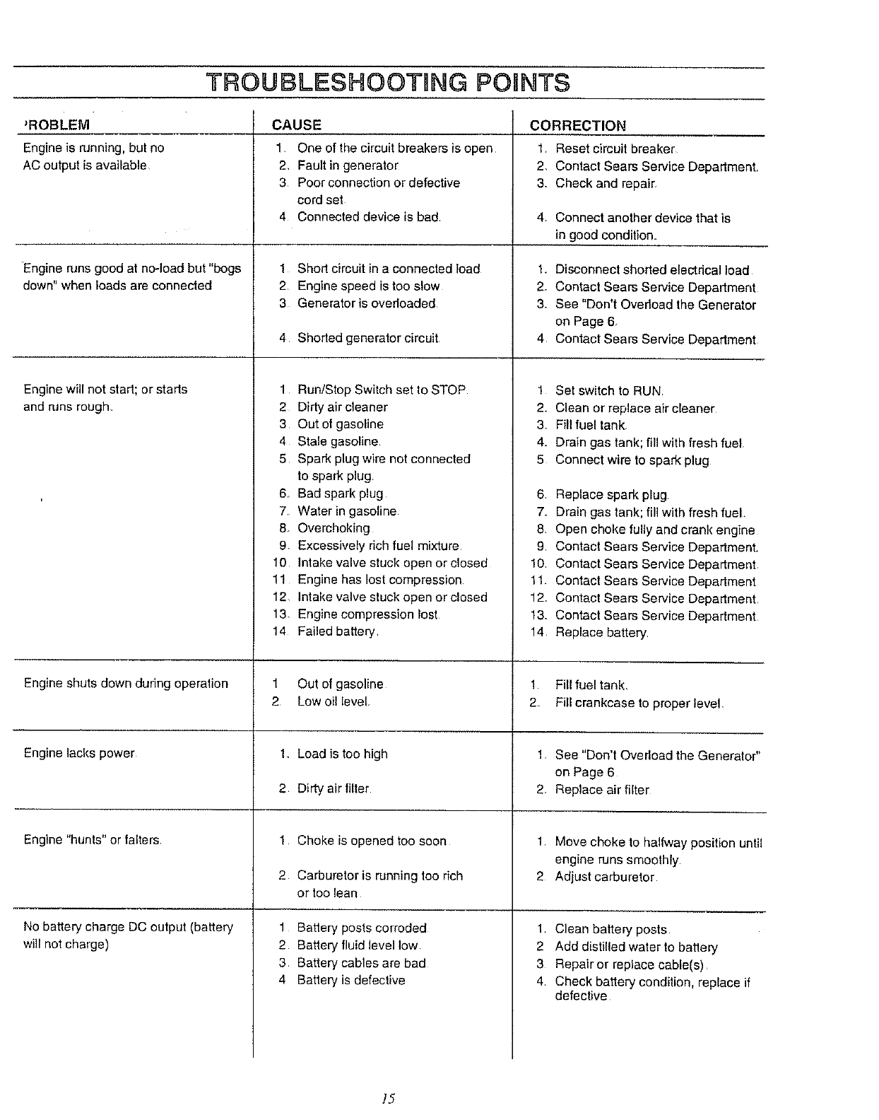 All parts listed herein may be ordered through Sears, Roebuck and Co.