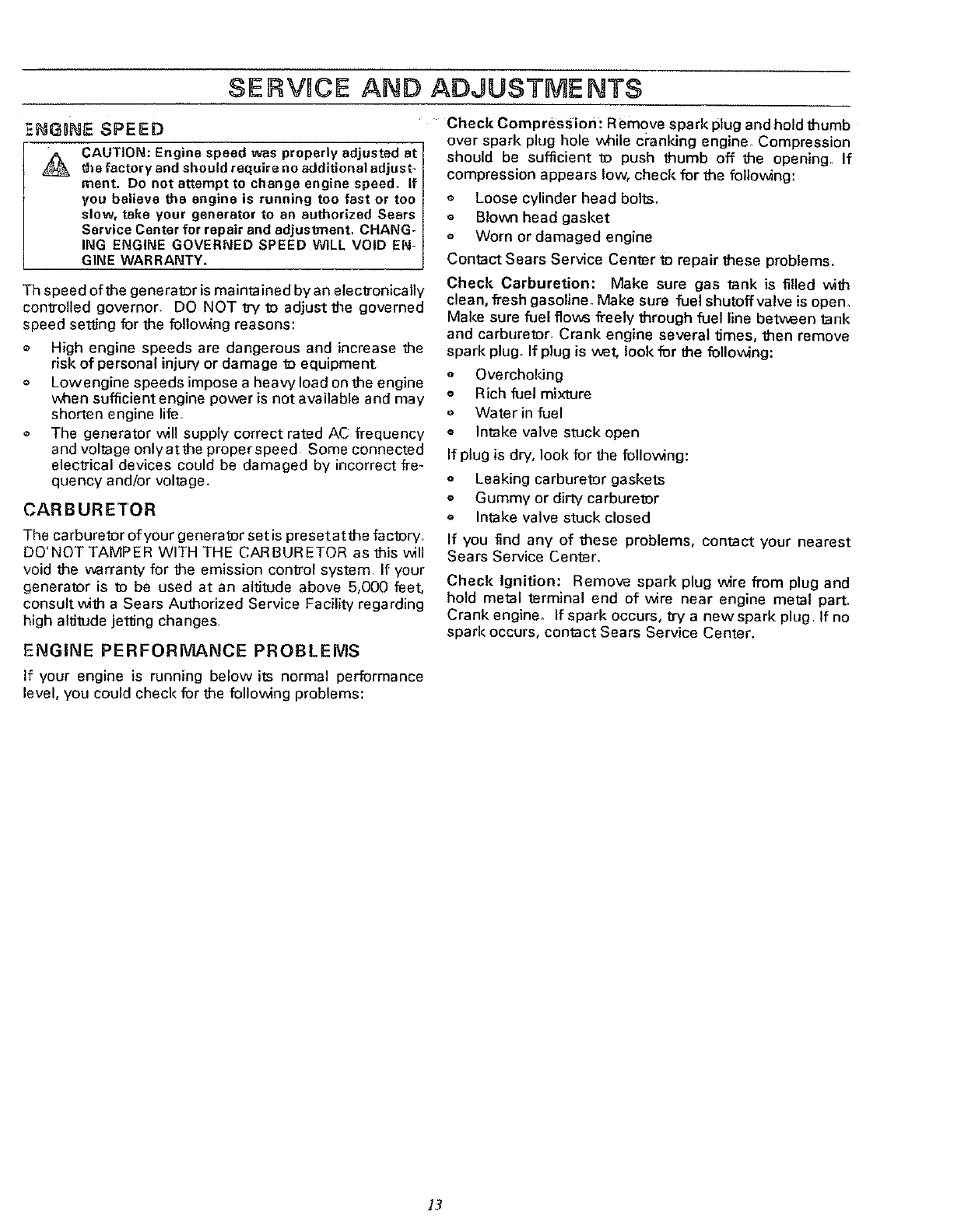 As the lawn and garden equipment engine owner, you should be aware that Sears may deny you warranty