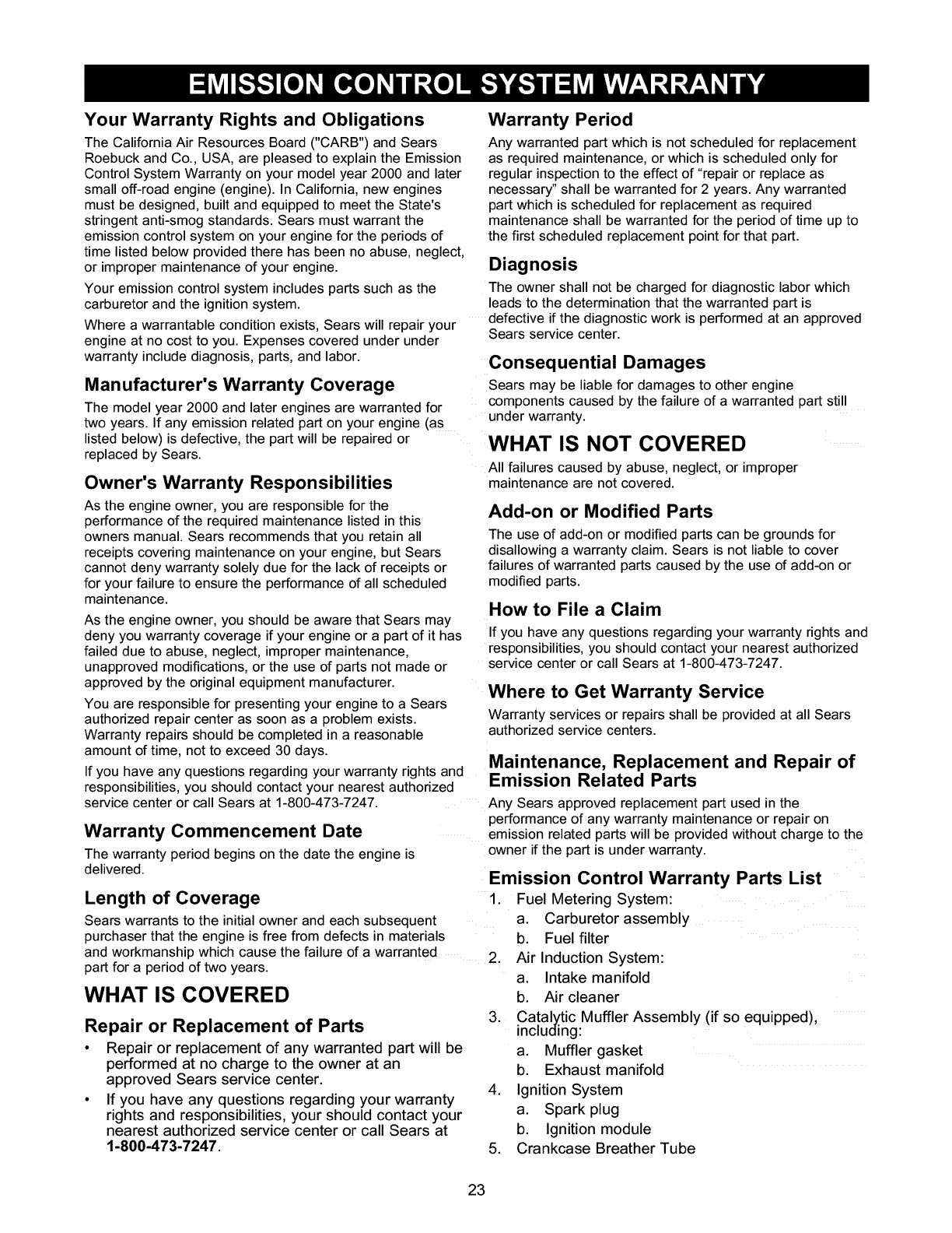 perform well. This warranty will not cover repair when normal use has exhausted the life of a part or engine.