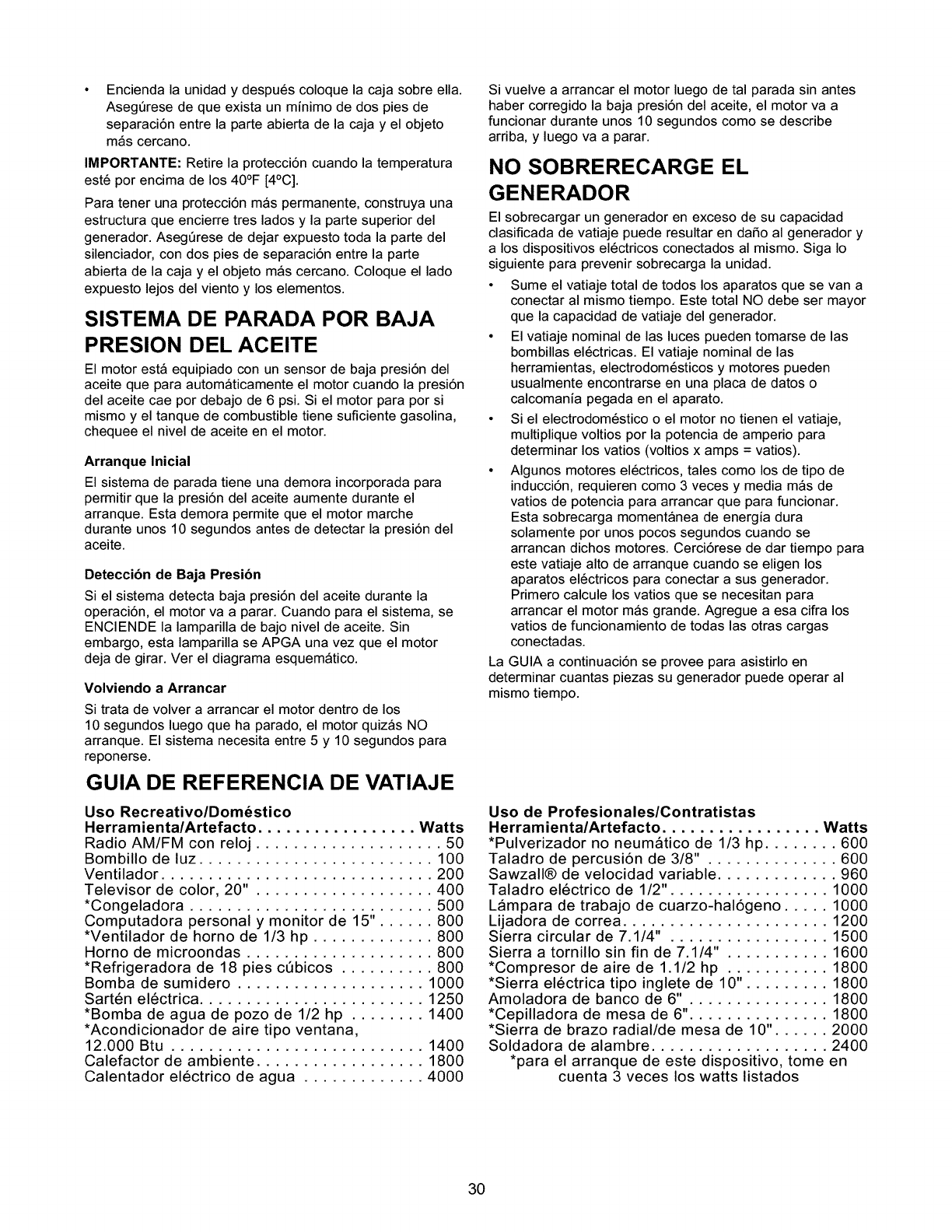 Craftsman 580329130 User Manual GENERATOR Manuals And Guides L0209038