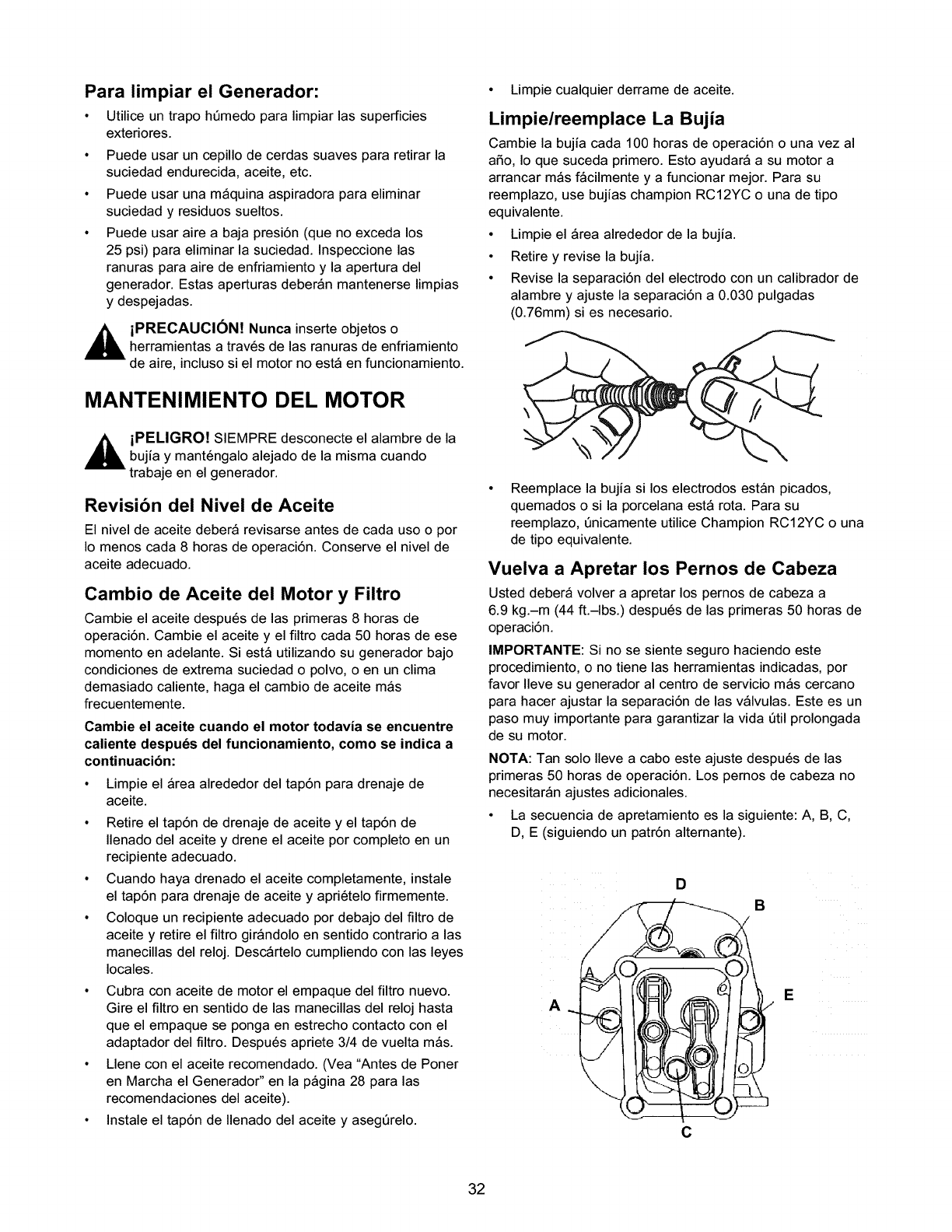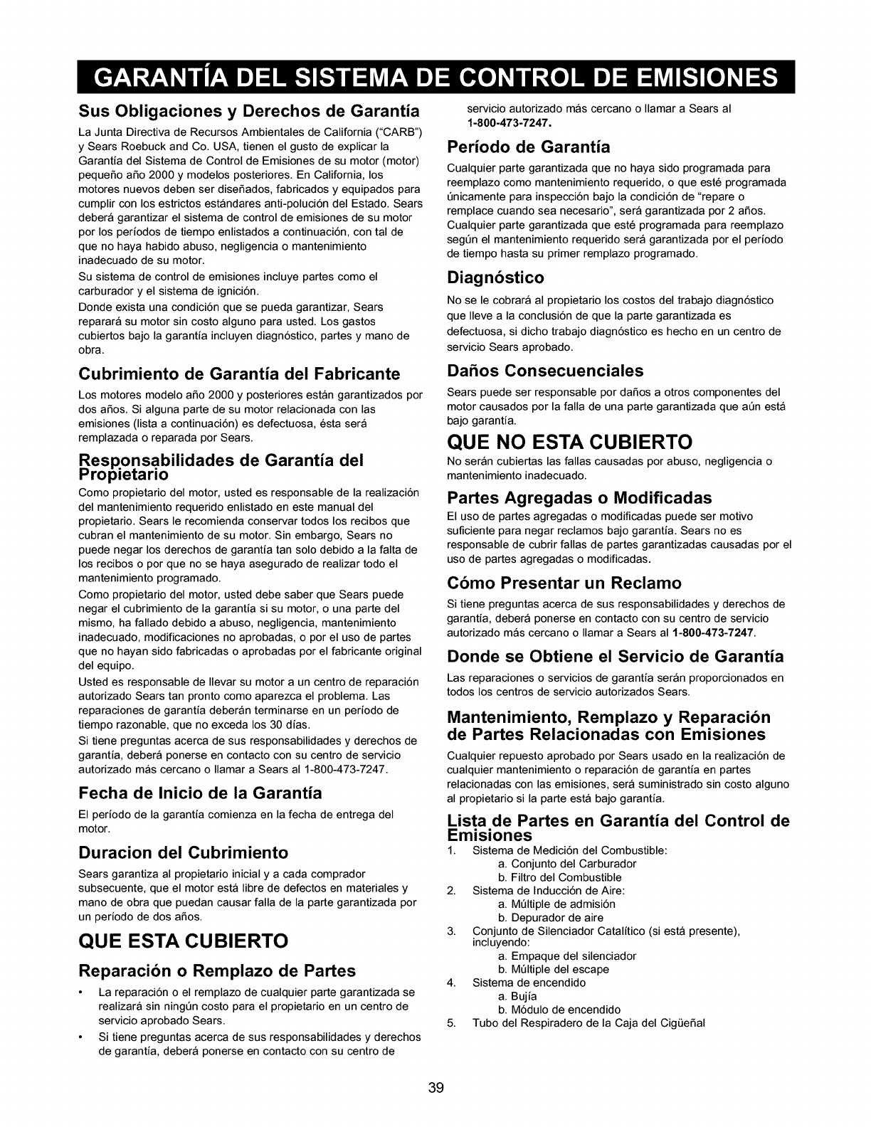 Usted es responsable de Ilevar su motor a un centre de reparaci6n