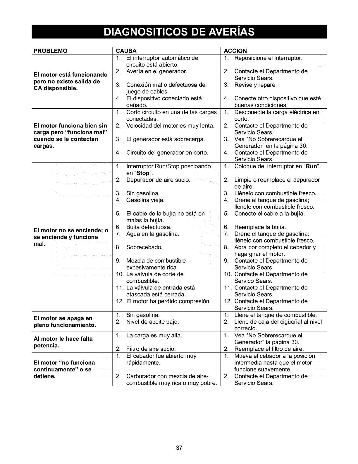 purchase. This warranty is not transferable and applies only to portable generators driven by the Sears