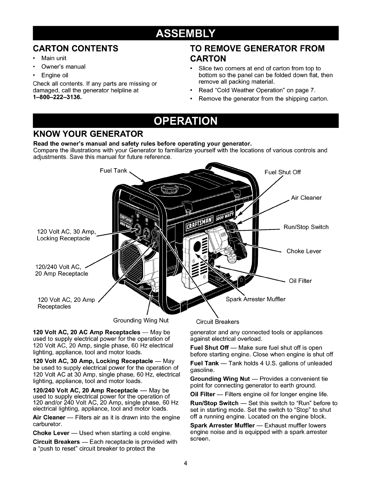 CRAFTSMAN Generator Manual L0209038 CRAFTSMAN Generator Owner's Manual, CRAFTSMAN Generator installation guides