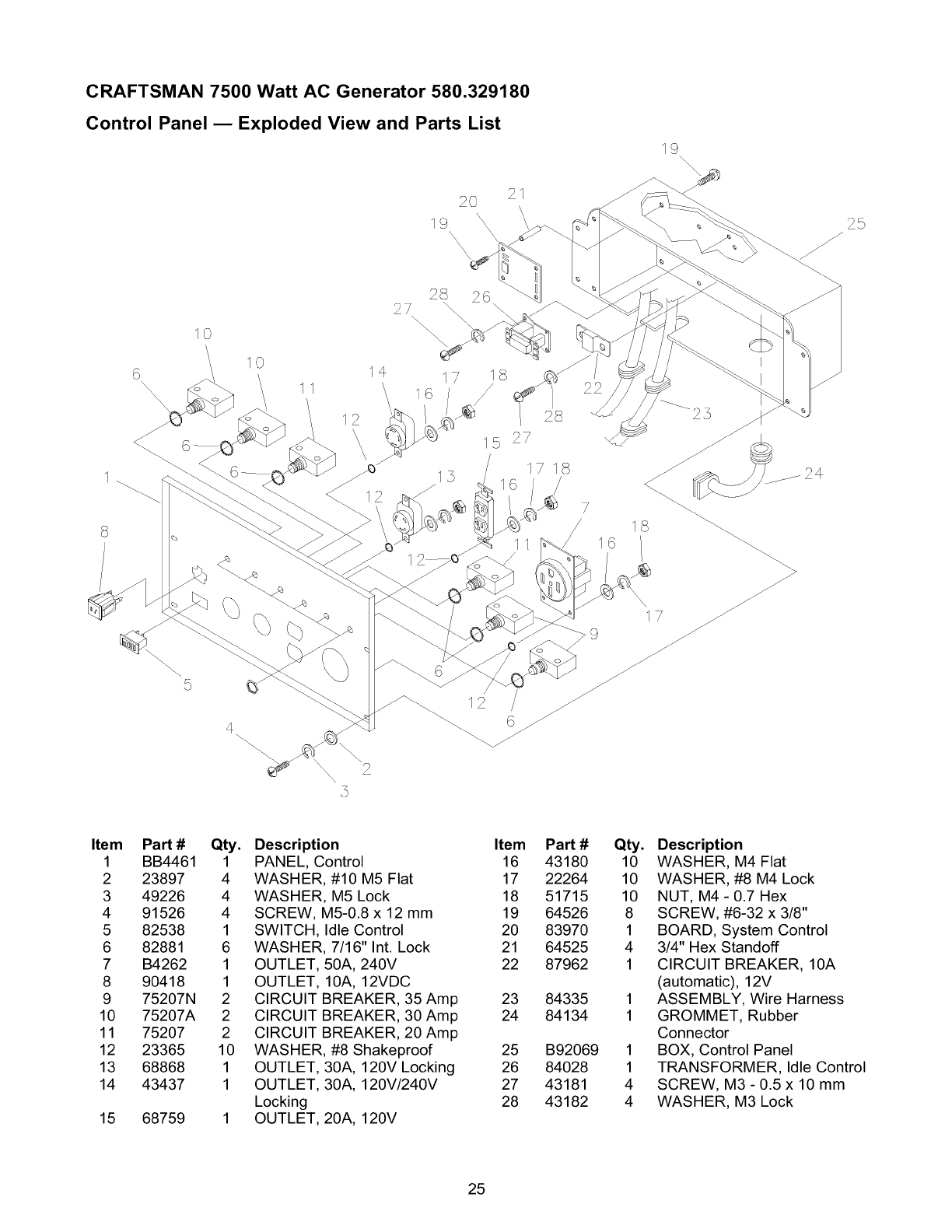 User Manual: Craftsman 580329180 580329180 CRAFTSMAN GENERATOR - Manuals and Guides View the owners manual for your CRAFTSMAN GENERATOR #580329180. Home:Tool Parts:Craftsman Parts:Craftsman GENERATOR Manual