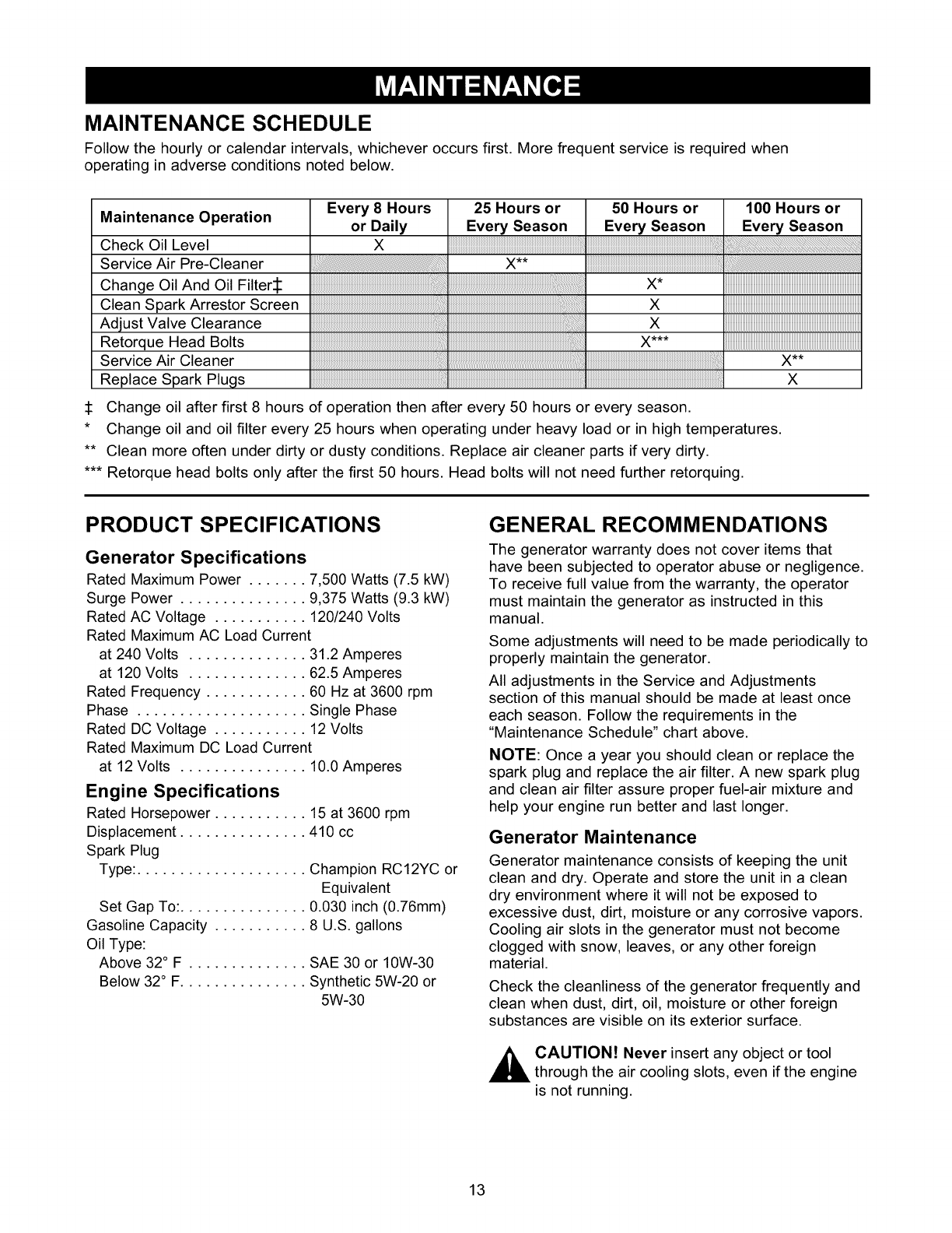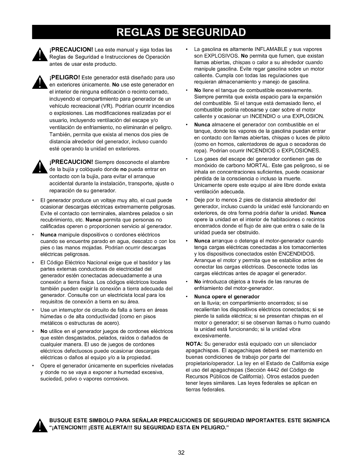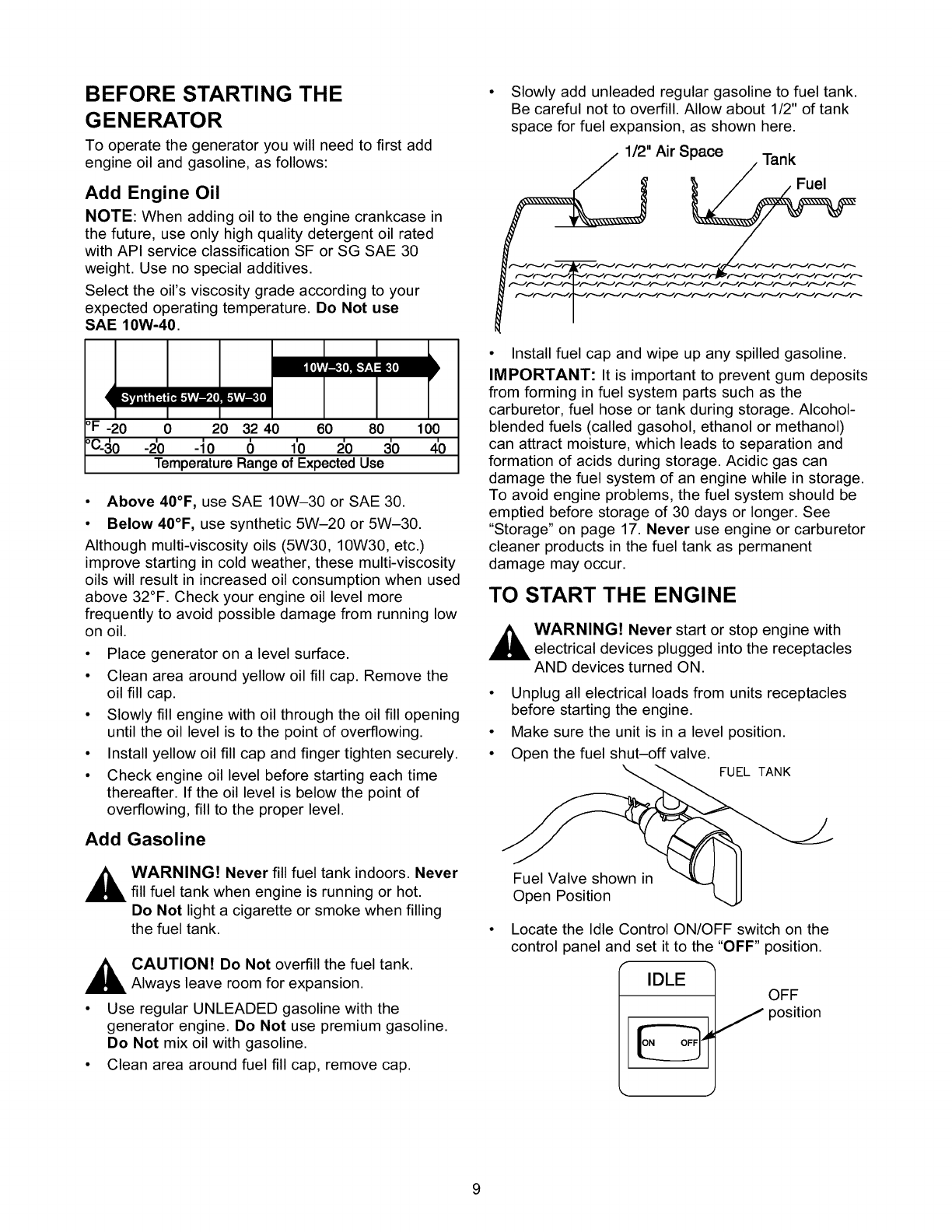 Craftsman 580329180 User Manual GENERATOR Manuals And Guides L0209047