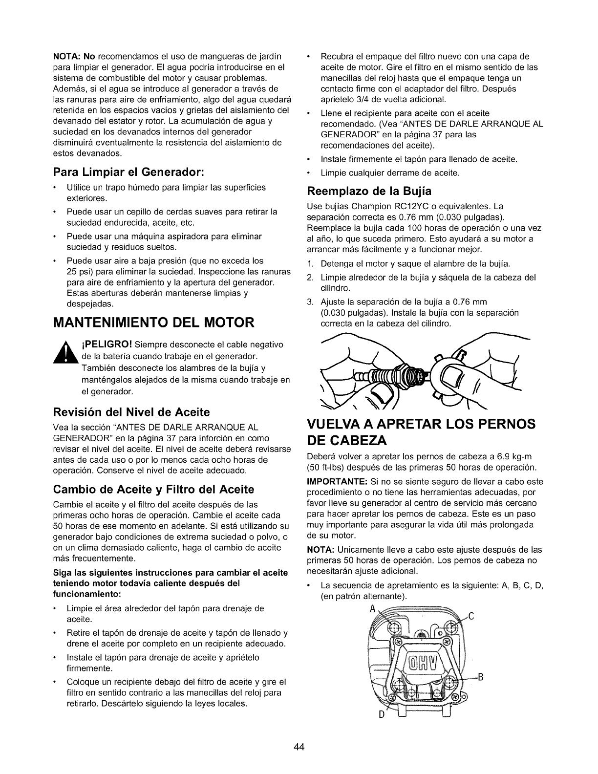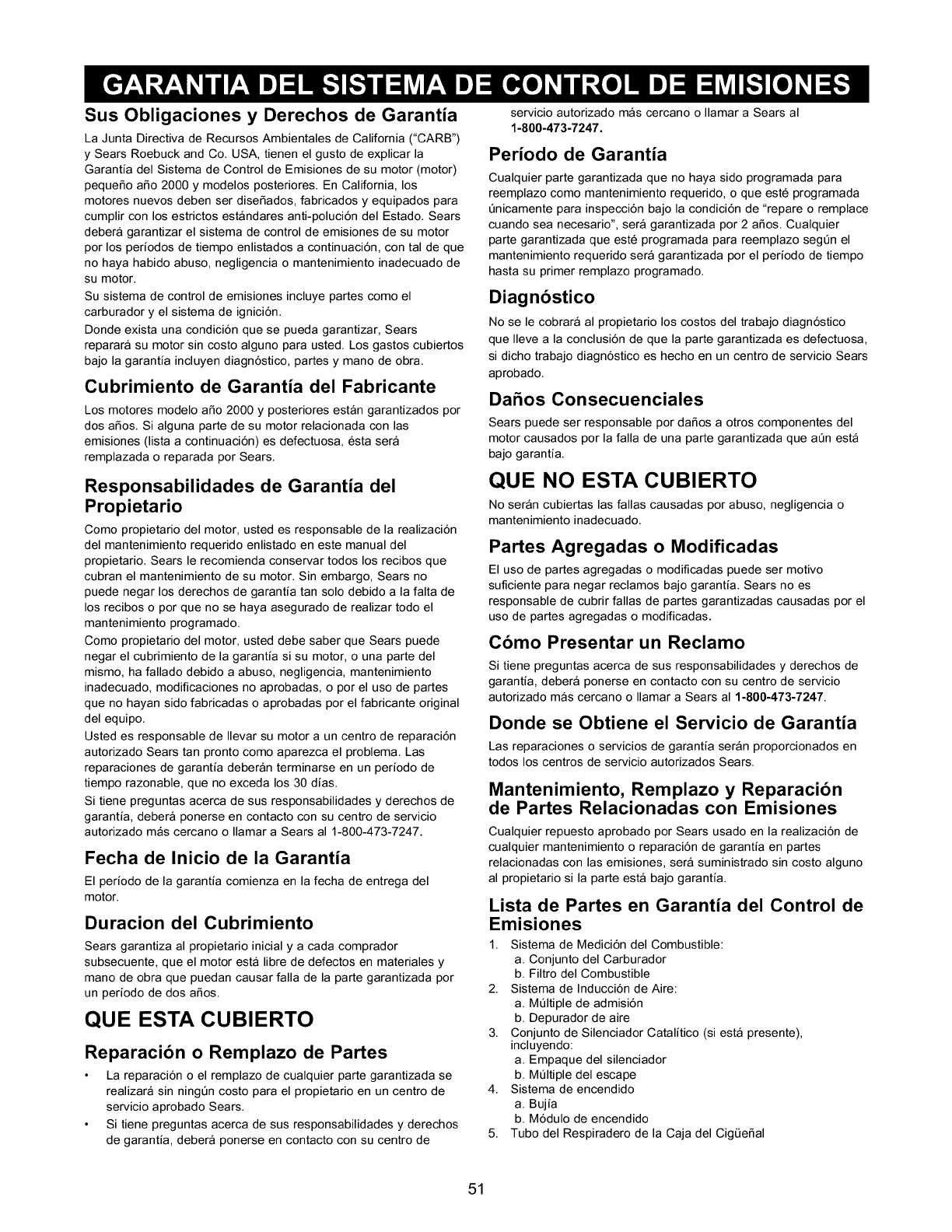 Usted es responsable de Ilevar su motor a un centro de reparaci6n