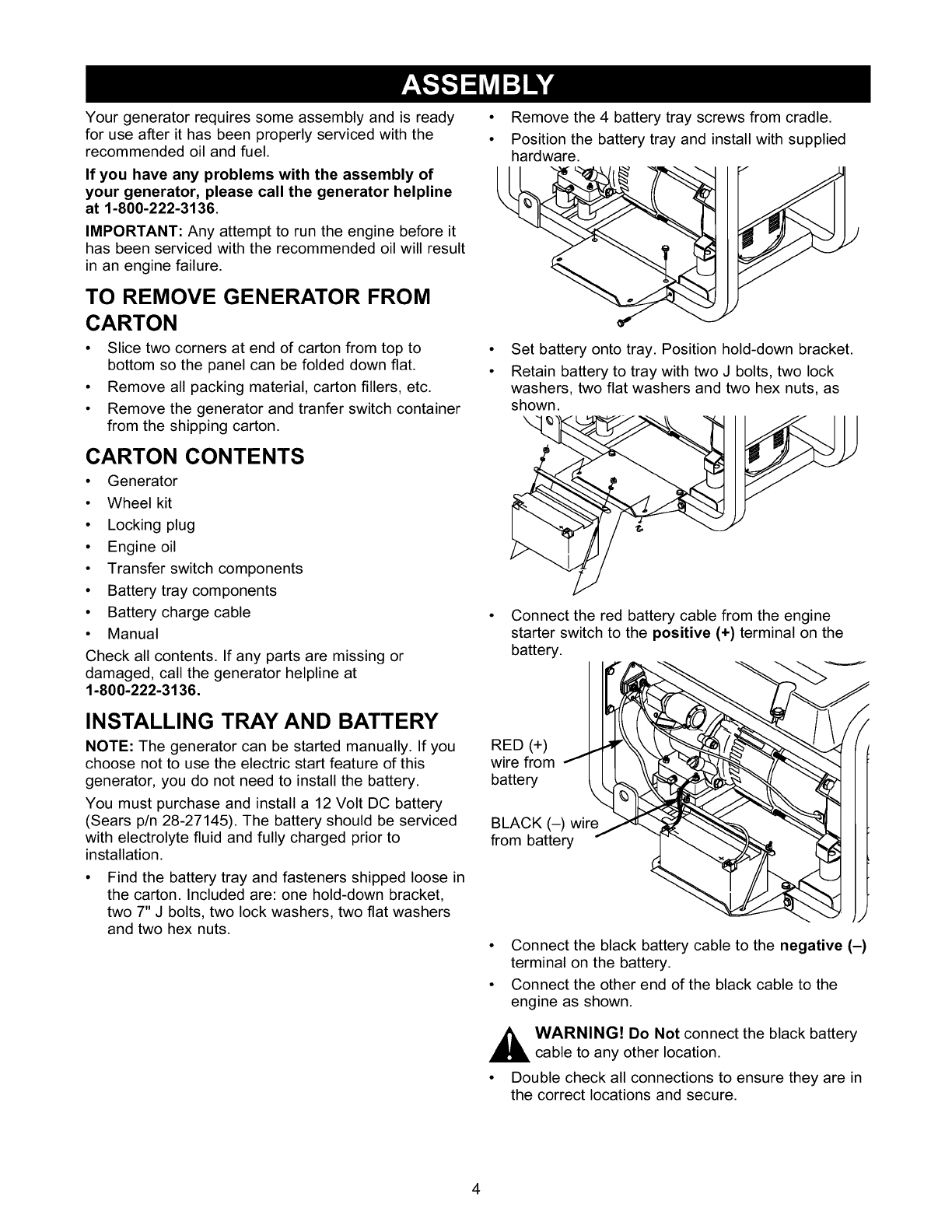 CRAFTSMAN Generator Manual L0209047 CRAFTSMAN Generator Owner's Manual, CRAFTSMAN Generator installation guides