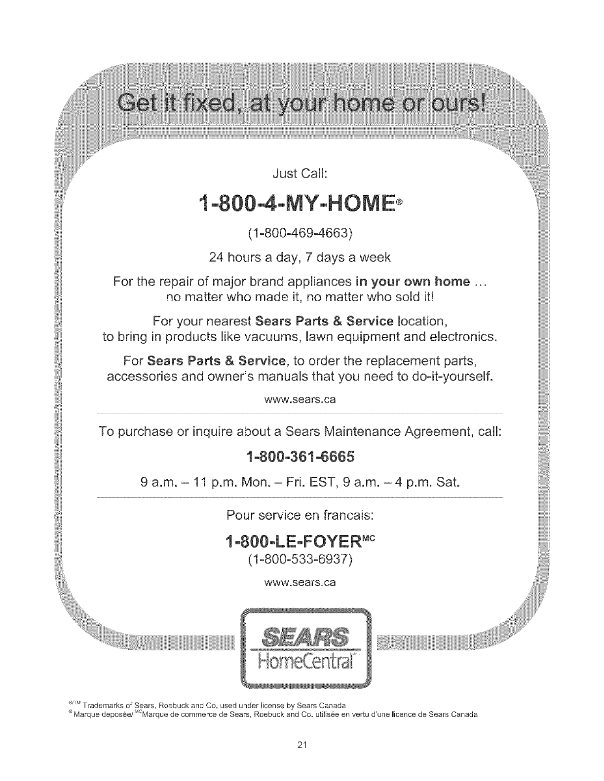 SEARS SERVICE CENTER OR DEALER IN CANADA.
