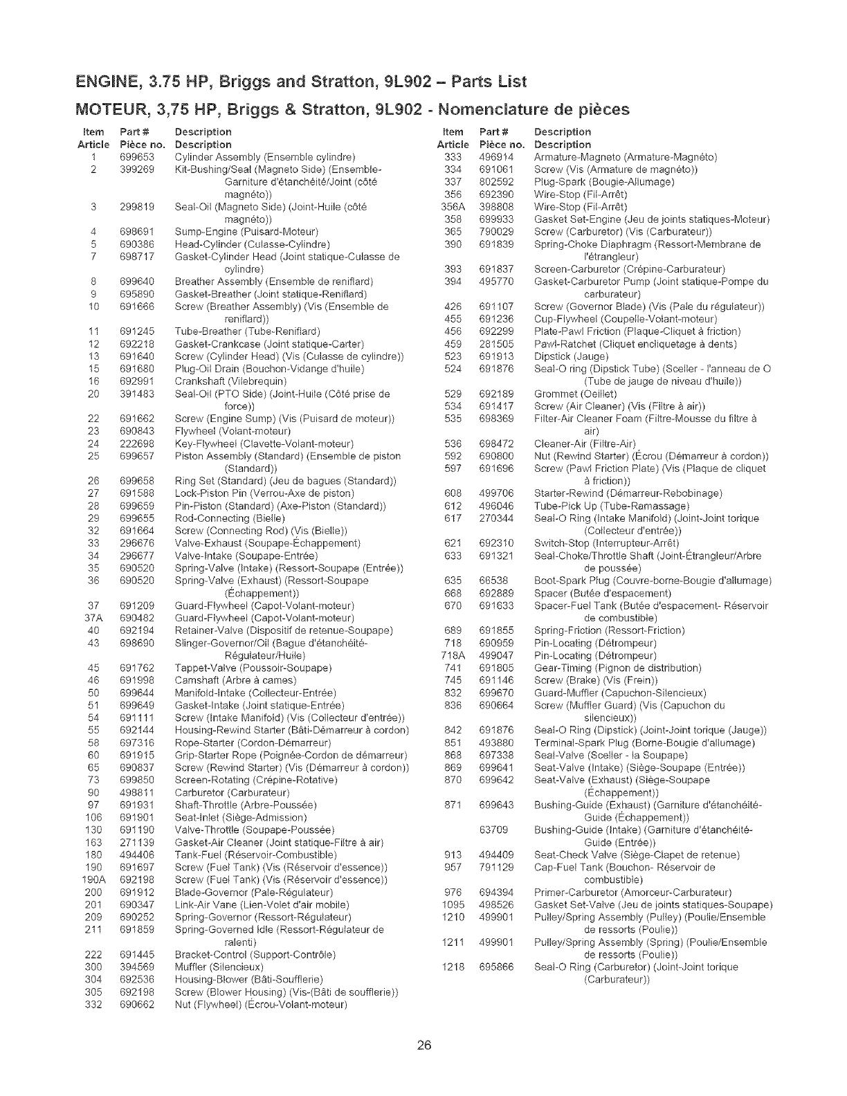 REPLACEMENT PARTS ....................... 22-26