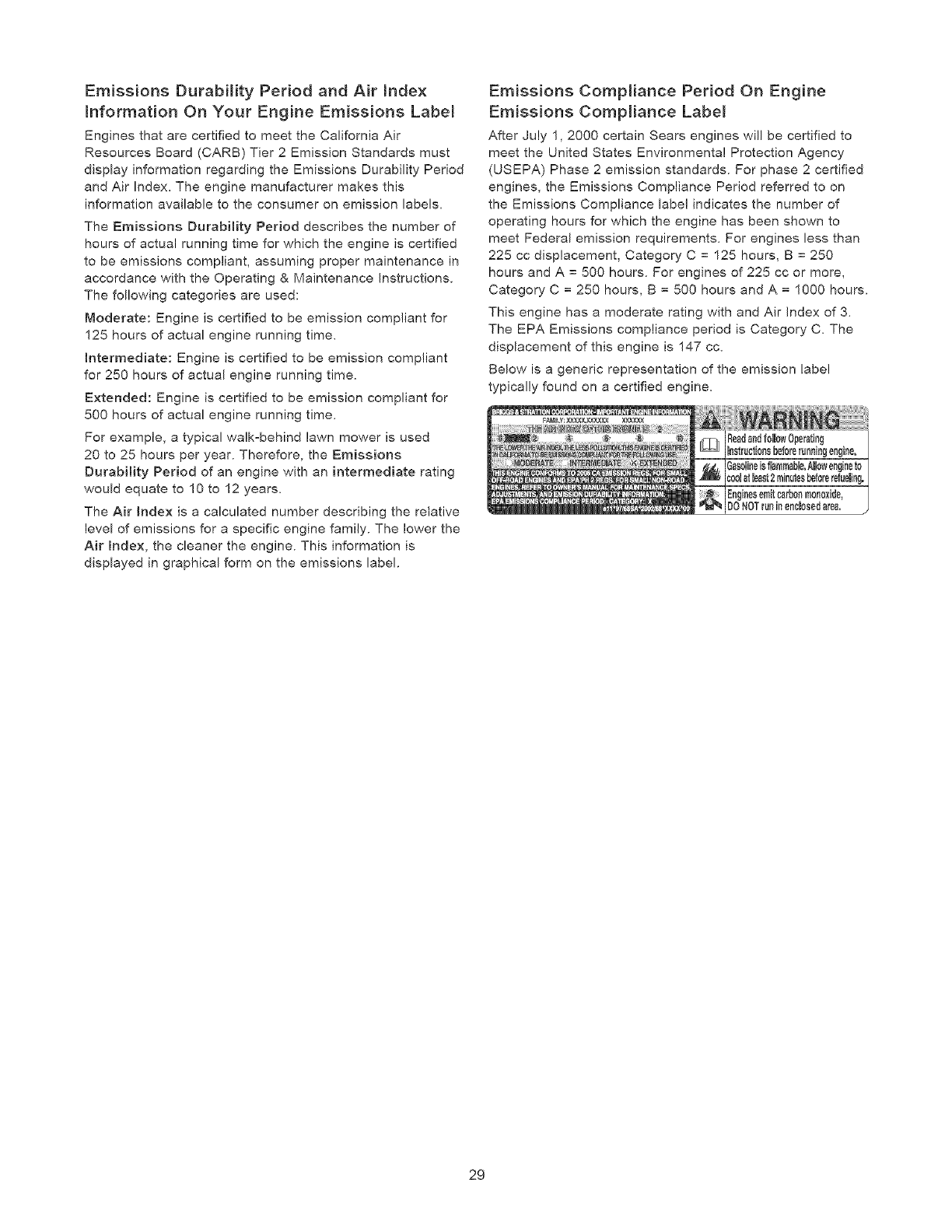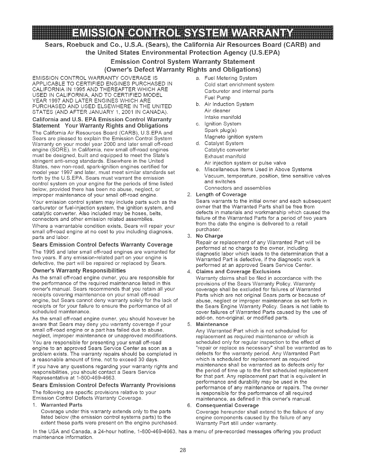 EMISSION CONTROL WARRANTY .............. 28-29