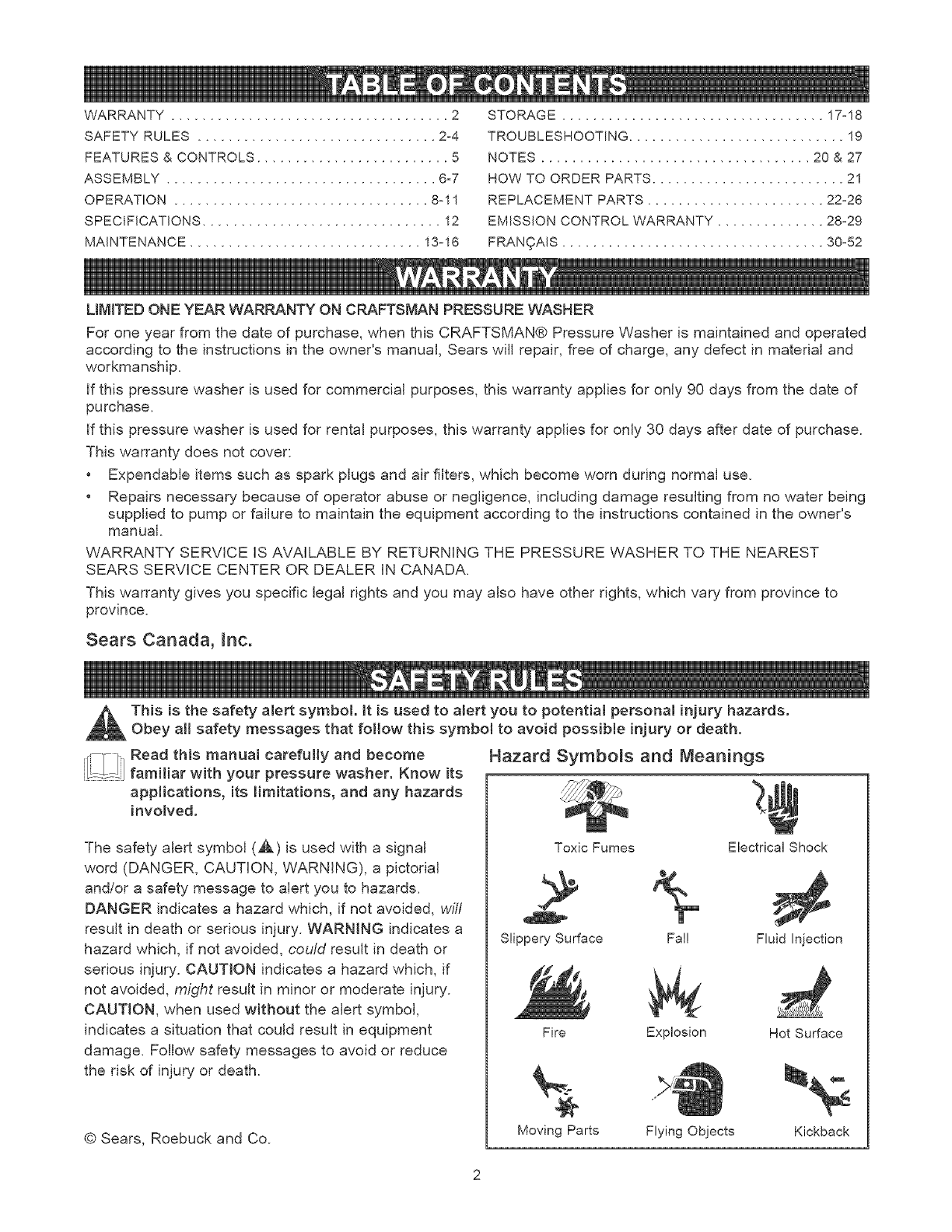 LIMITED ONE YEAR WARRANTY ON CRAFTSMAN PRESSURE WASHER