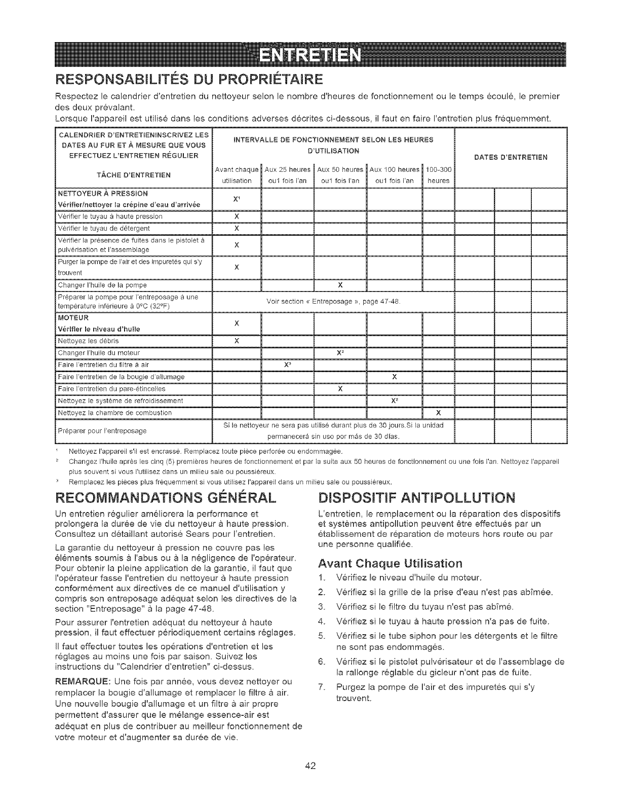 Ventretien requis, indiqud darts le prdsent manuel d'utilisation