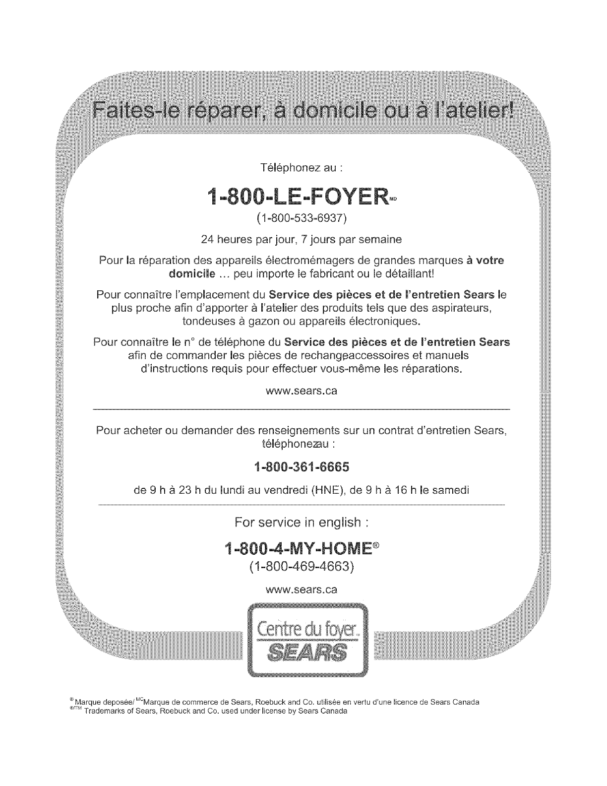 _>Marque deposee/MCMarque de commerce de Sears, Roebuck and Co. utilis6e en vertu d'une licence de Sears Canada