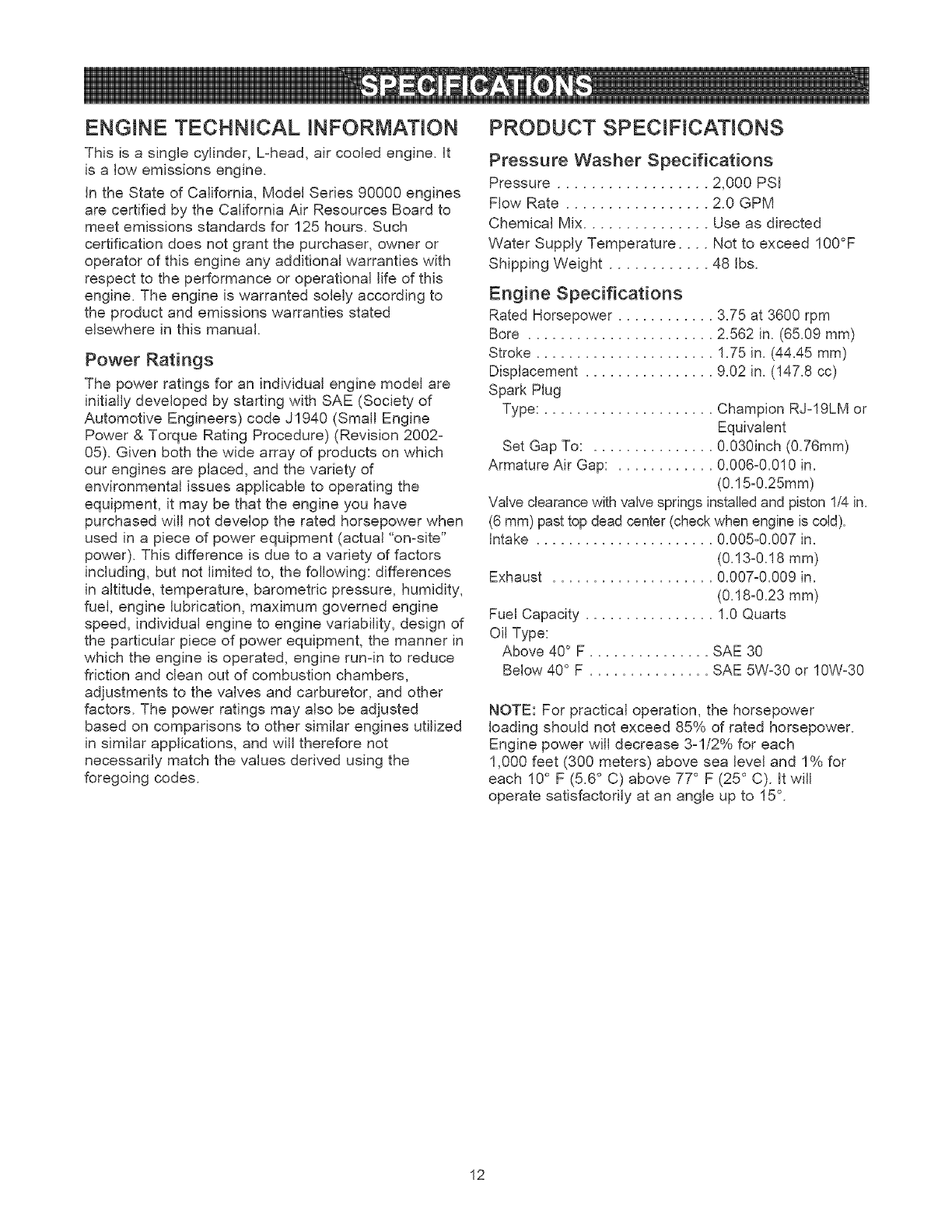 SPECIFICATIONS ............................... 12