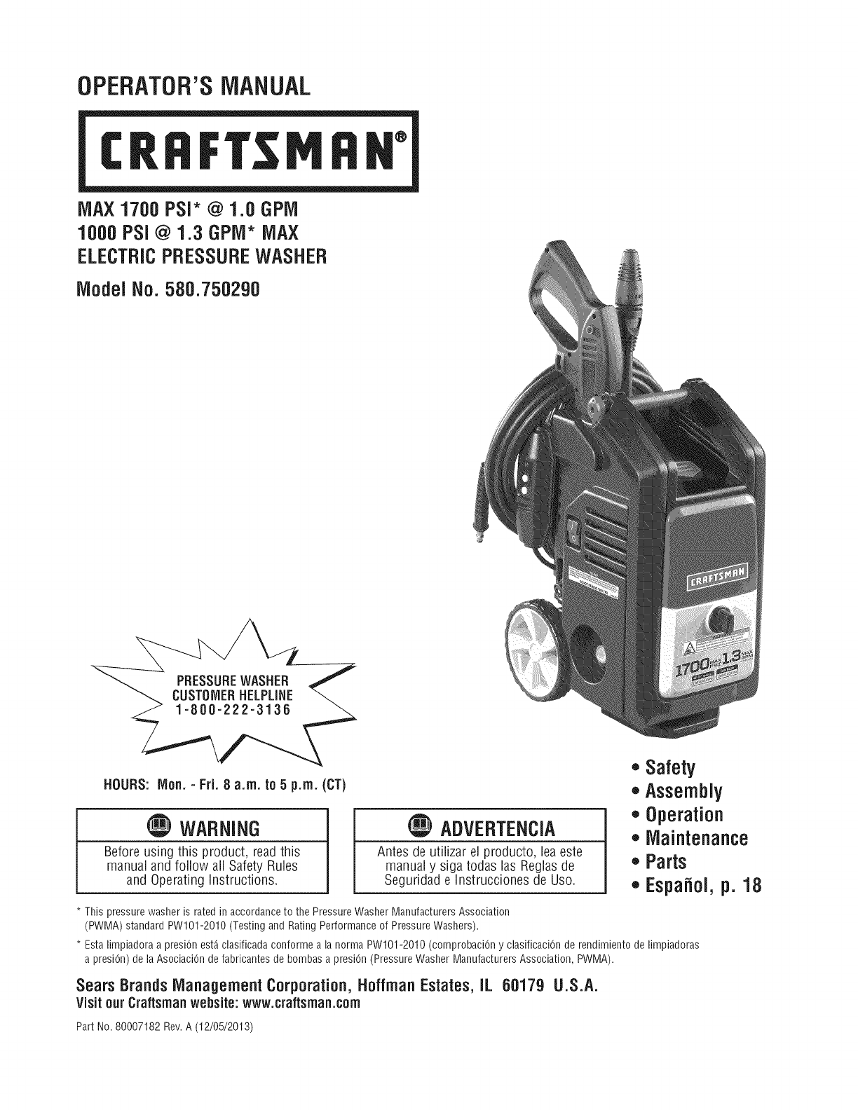 Craftsman 580750290 User Manual ELECTRIC POWER WASHER Manuals And Guides 1312172L