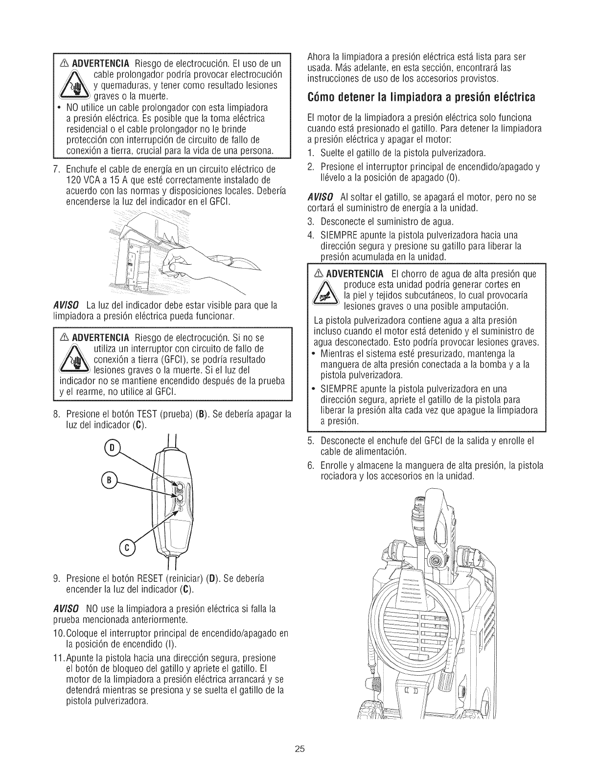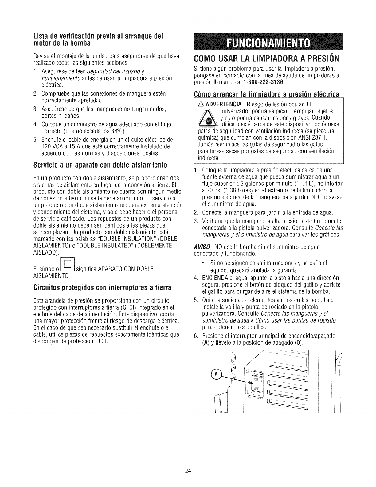 encendido (I). Reinicieel GFCI.