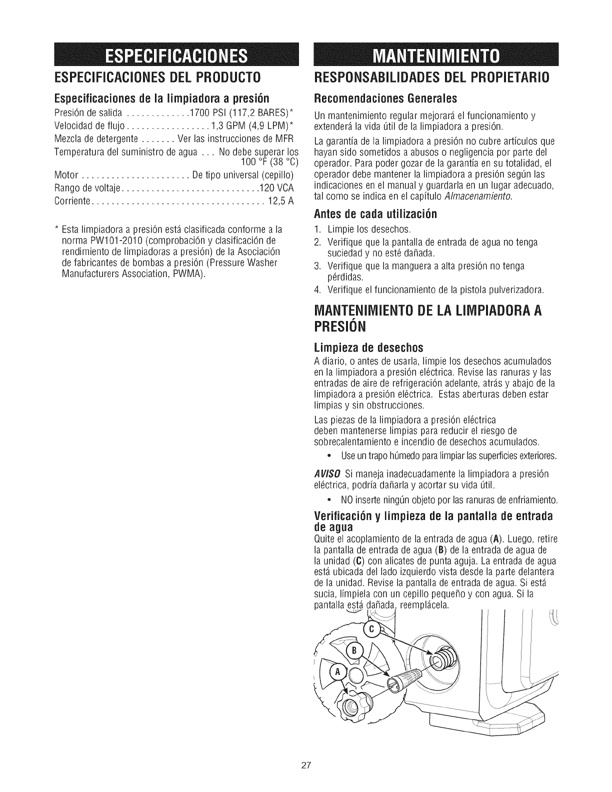 a presiOn) de la AsociaciOn defabricantes de bombas a presiOn (Pressure Washer Manufacturers Association, PWMA).