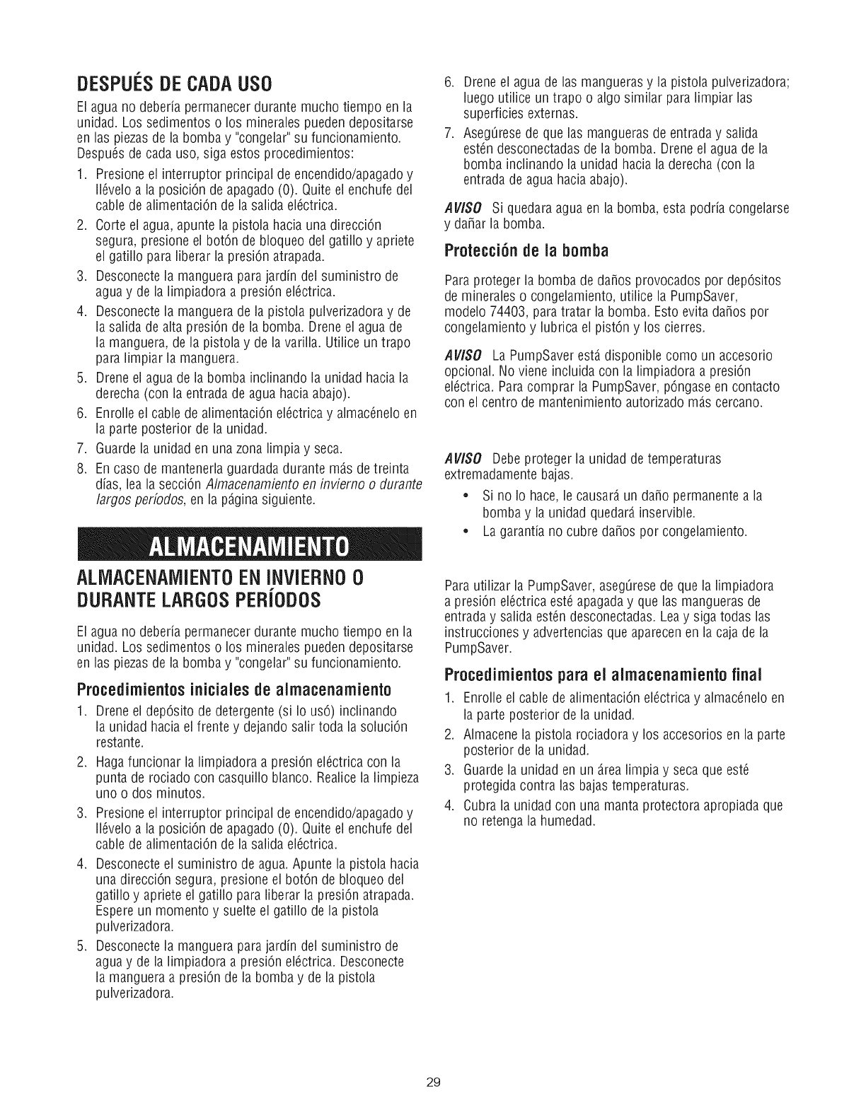 de mineraies o congelamiento, utilice ia PumpSaver,